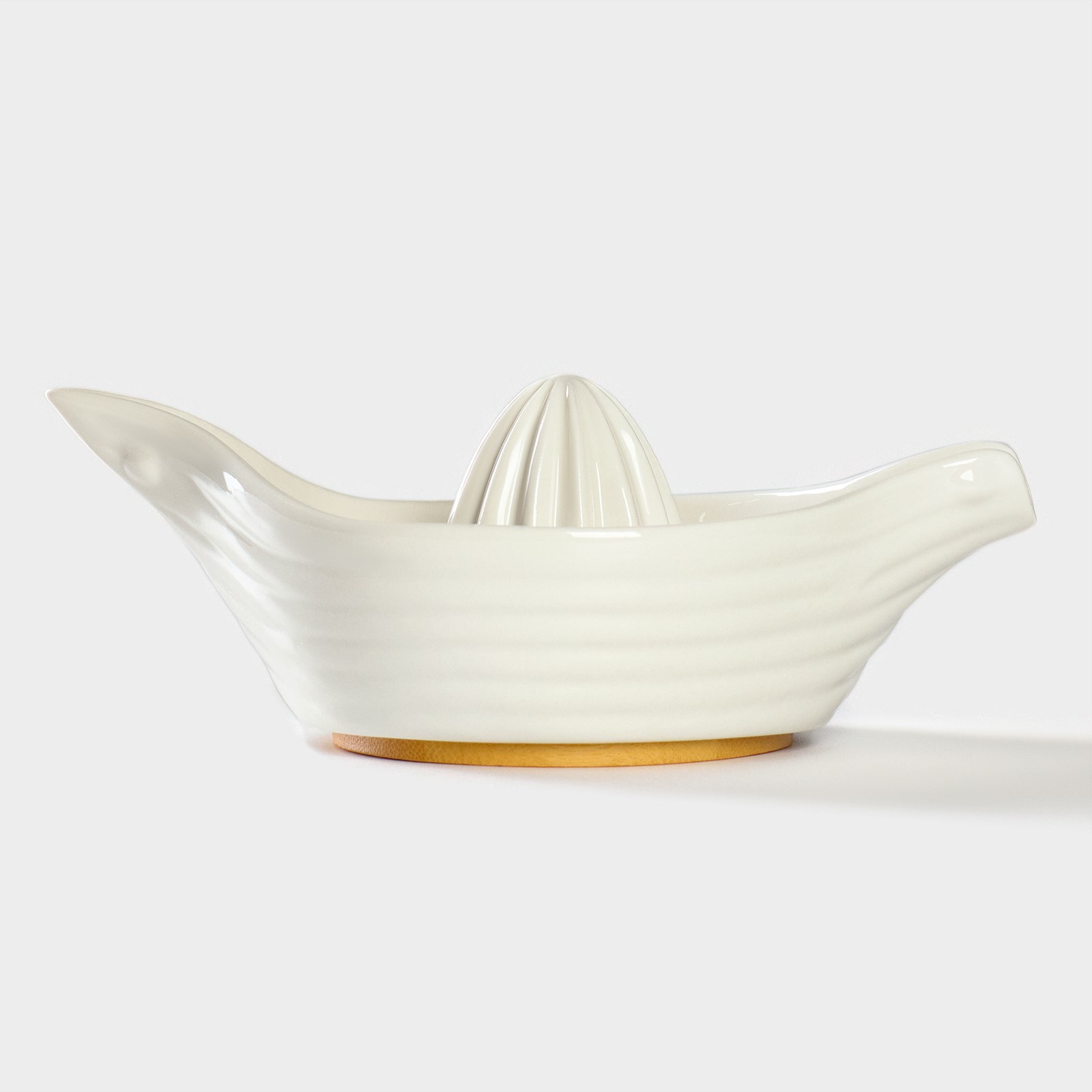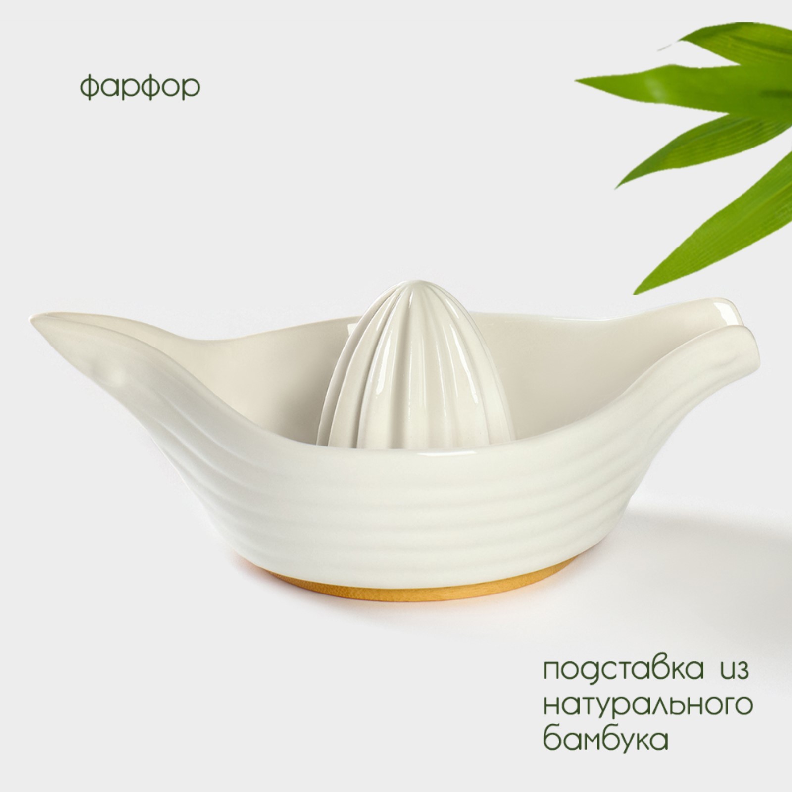 Соковыжималка фарфоровая на подставке из бамбука Bellatenero, 19x12x7,5 см, цвет белый