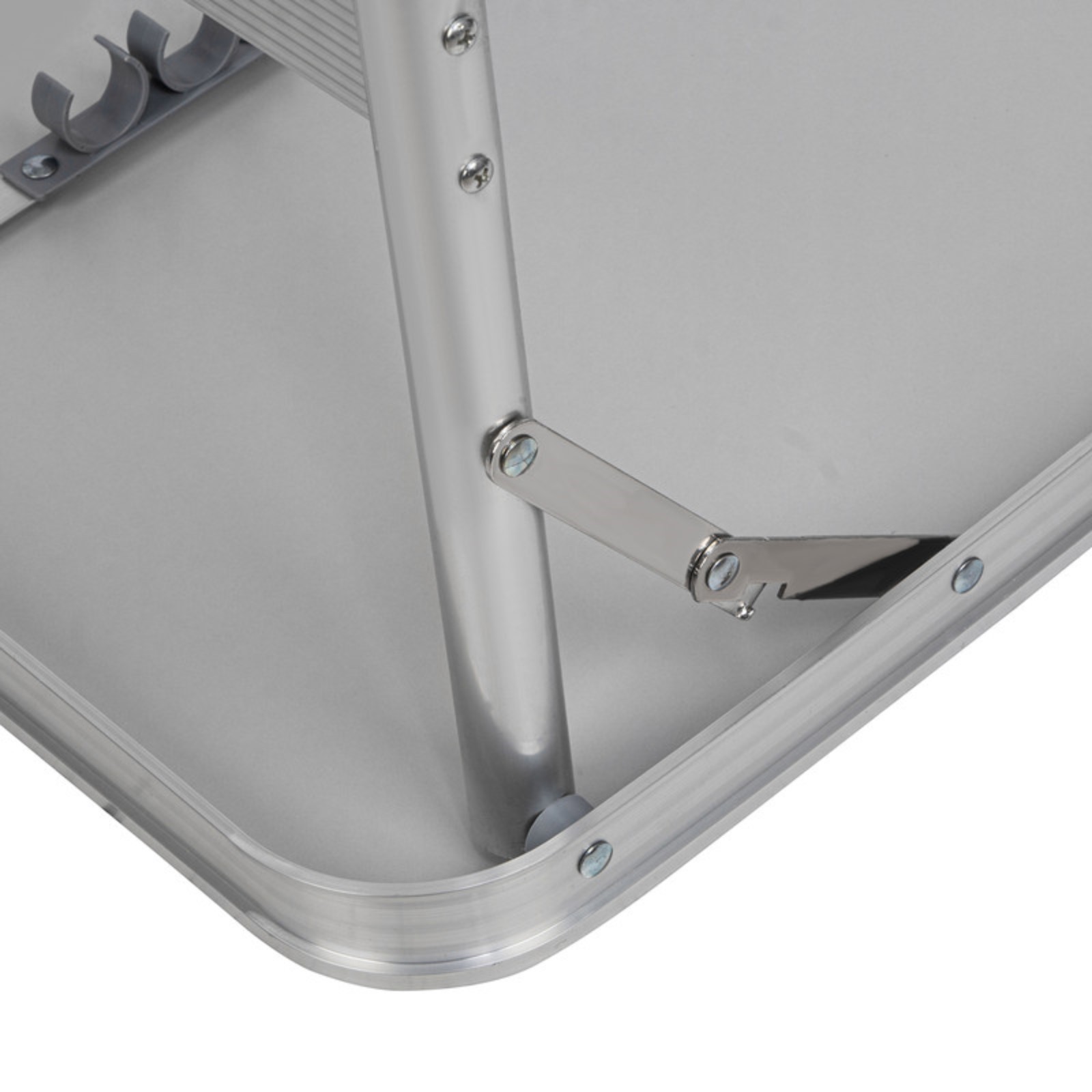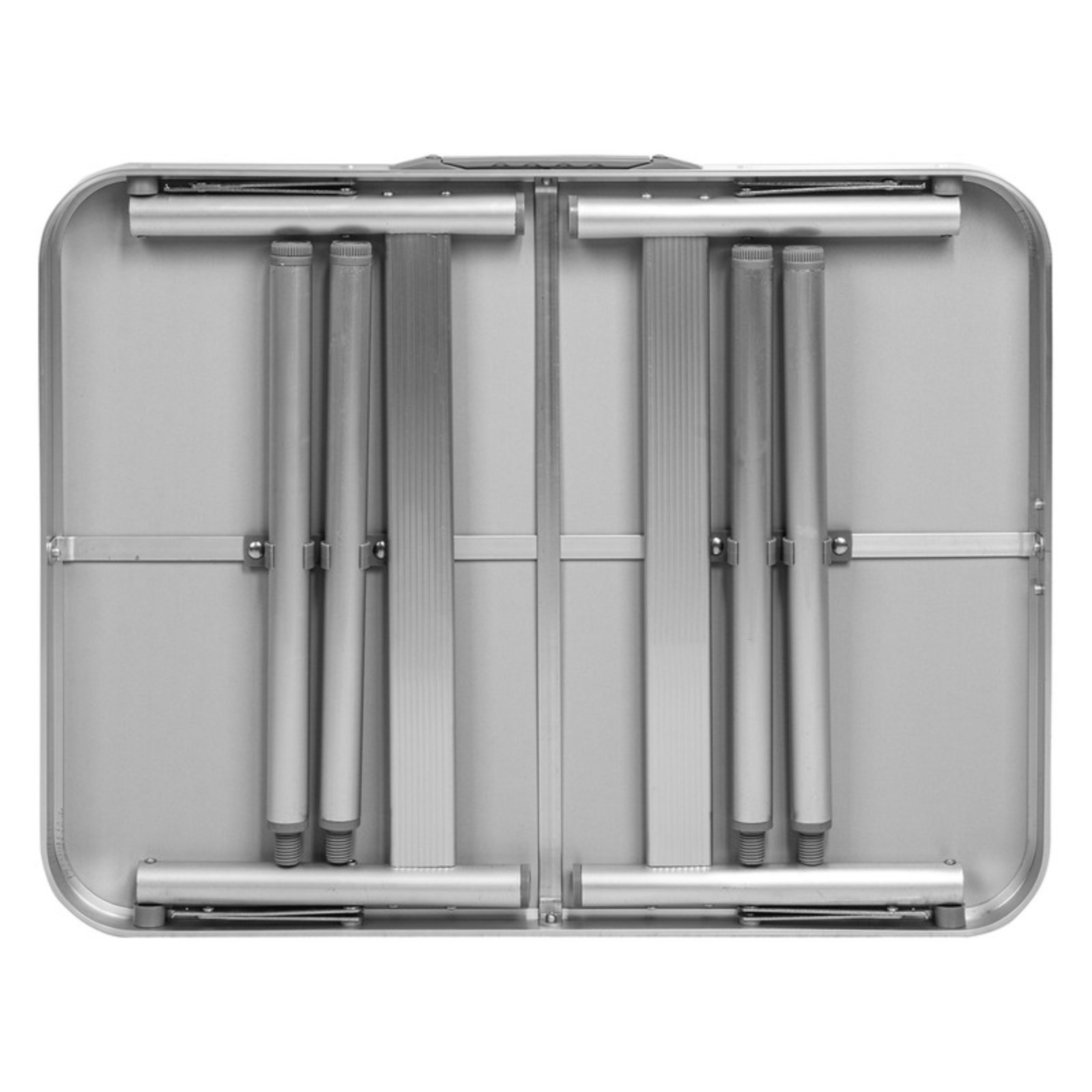 Стол складной алюминиевый palisad camping, столешница мдф, 600х450х250/590 мм. При помощи заглушек для ножек можно выровнять на искривленной поверхности. Складной стол позволяет организовать приём пищи для нескольких человек. Съёмные части ножек фиксируются в пазах на тыльной поверхности столешницы, а верхние складываются. Благодаря составным ножкам стол можно зафиксировать на высоте 25 или 59 см. Цвет: Серебристый Форма: Прямоугольная Ширина столешницы, см: 45 Длина столешницы, см: 60 Высота стола, см: 590 Вид дерева: Лиственница Материал: МДФ Материал: Полипропилен Материал: Алюминий Раскладная мебель: Да Размер столешницы, см: 45 х 60  развернуть описание ▼
