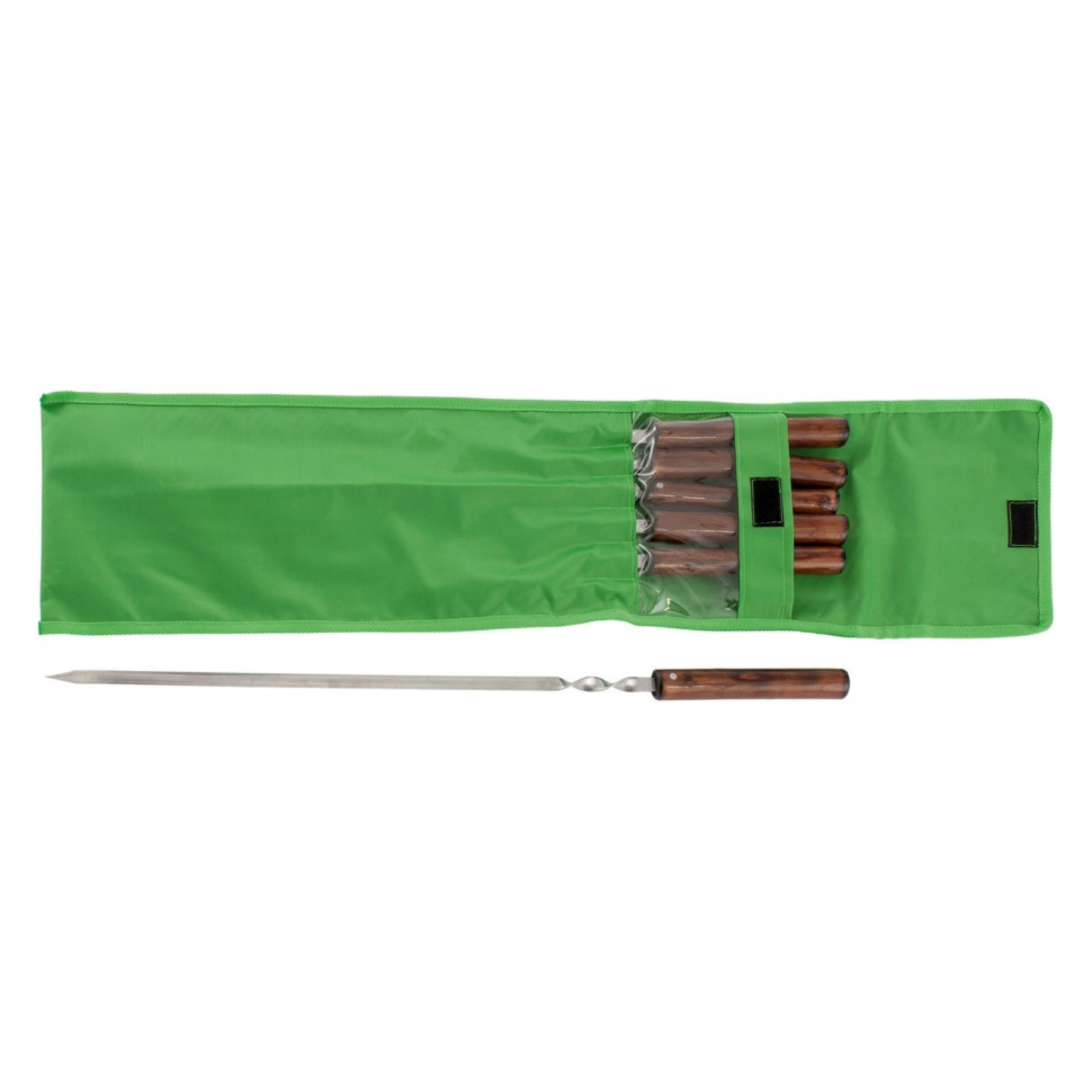 Набор шампуров угловых palisad camping, 650 мм, с цельной деревянной рукояткой, в наборе 6 шт.. Набор предназначен для приготовления шашлыка из мяса, птицы, овощей. Винт у основания шампура позволяет надёжно фиксировать его в пазах мангала, не даёт ему прокручиваться. Увеличенная толщина шампура не позволяет сгибается и деформироваться под тяжестью нанизанных продуктов. Толщина металла, мм: 1.5 В наборе, шт.: 6 Длина рабочей части, см: 65 Материал ручки: Дерево Вид: Угловой  развернуть описание ▼