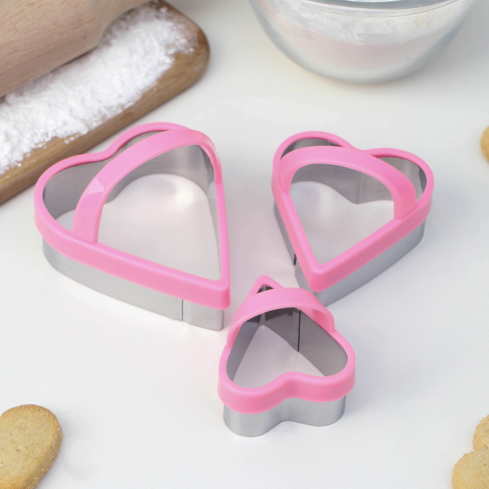 Набор форм для вырезания печенья Konfinetta «сердце», 3 шт, цвет розовый