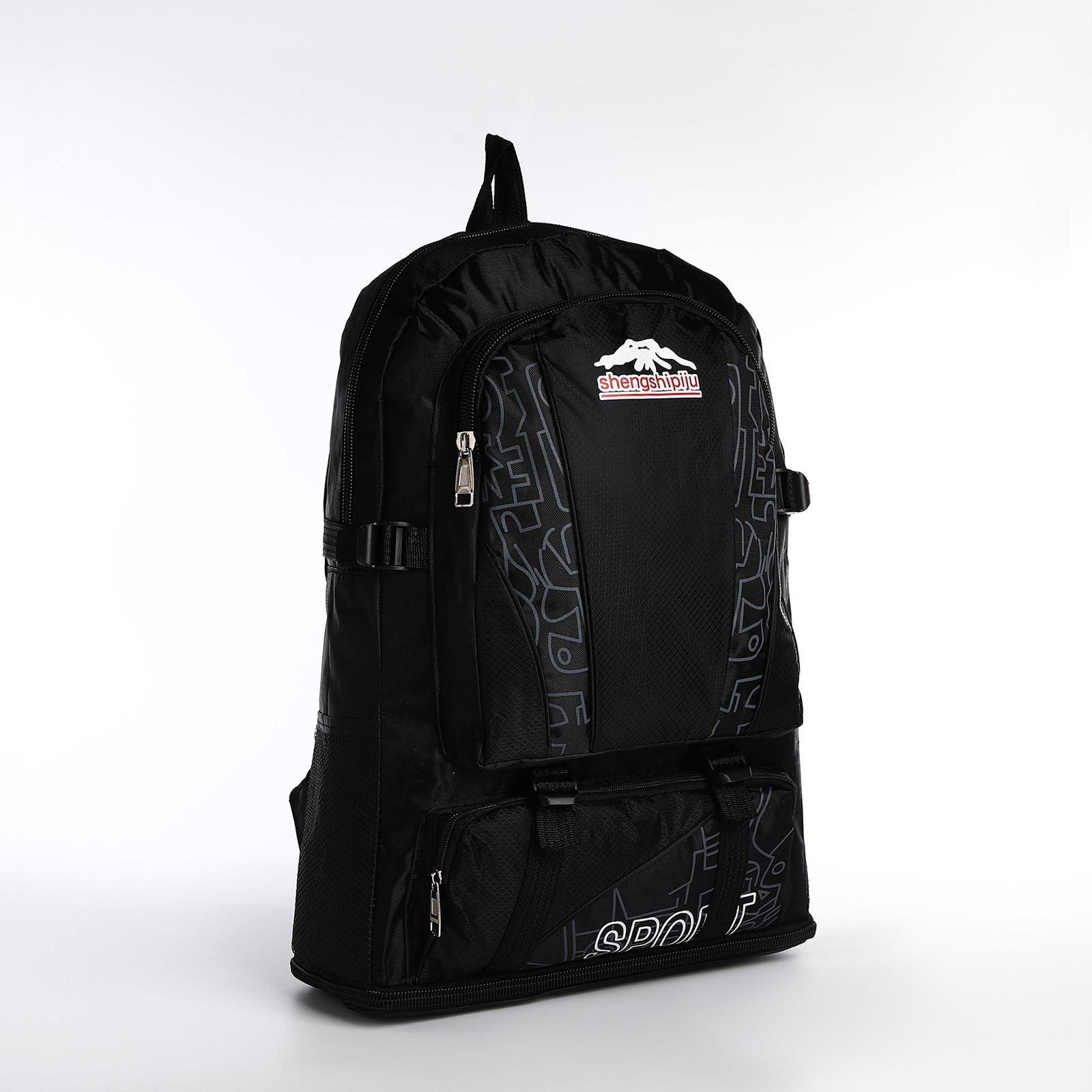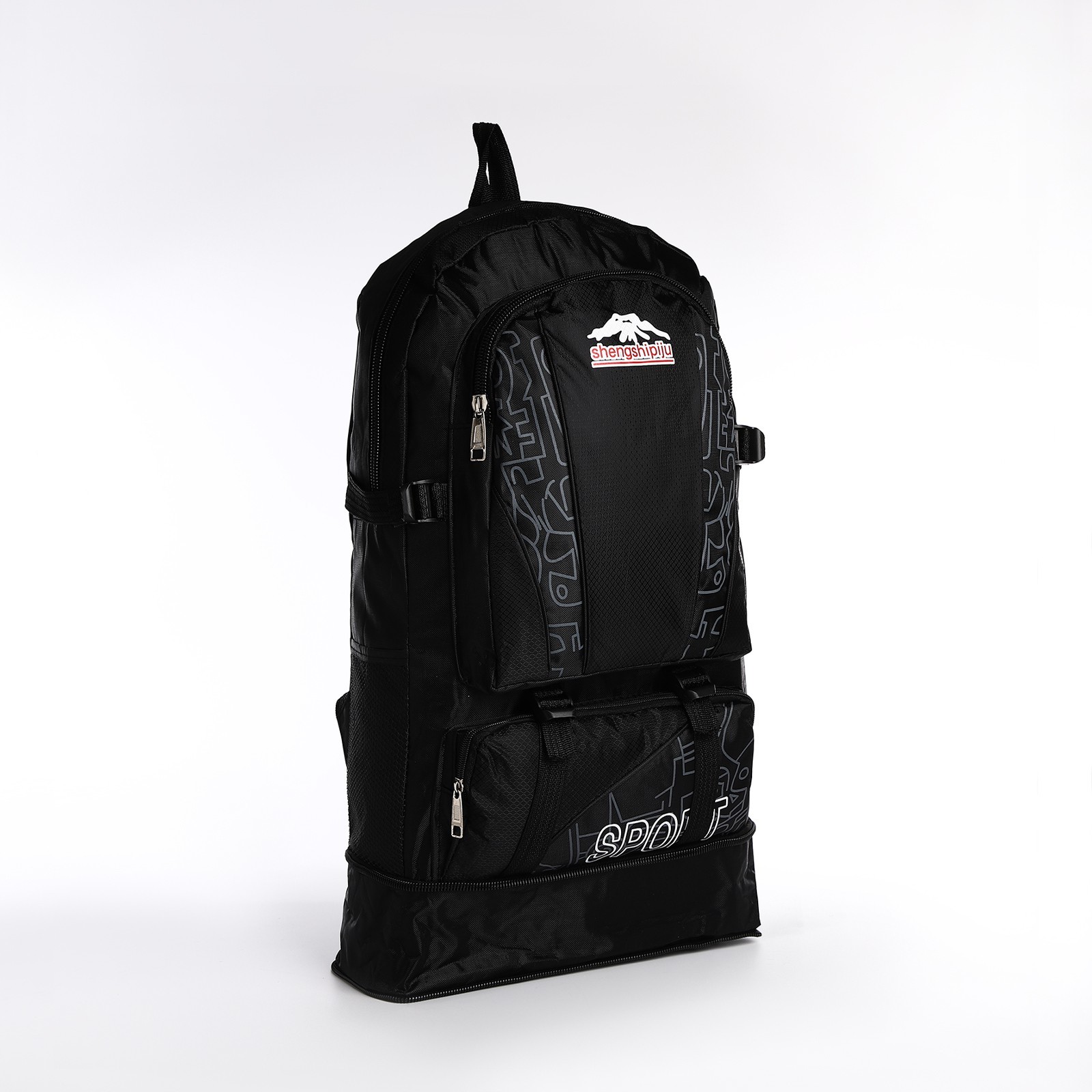 Рюкзак туристический на молнии с увеличением, 55л, 5 наружных карманов, цвет чёрный