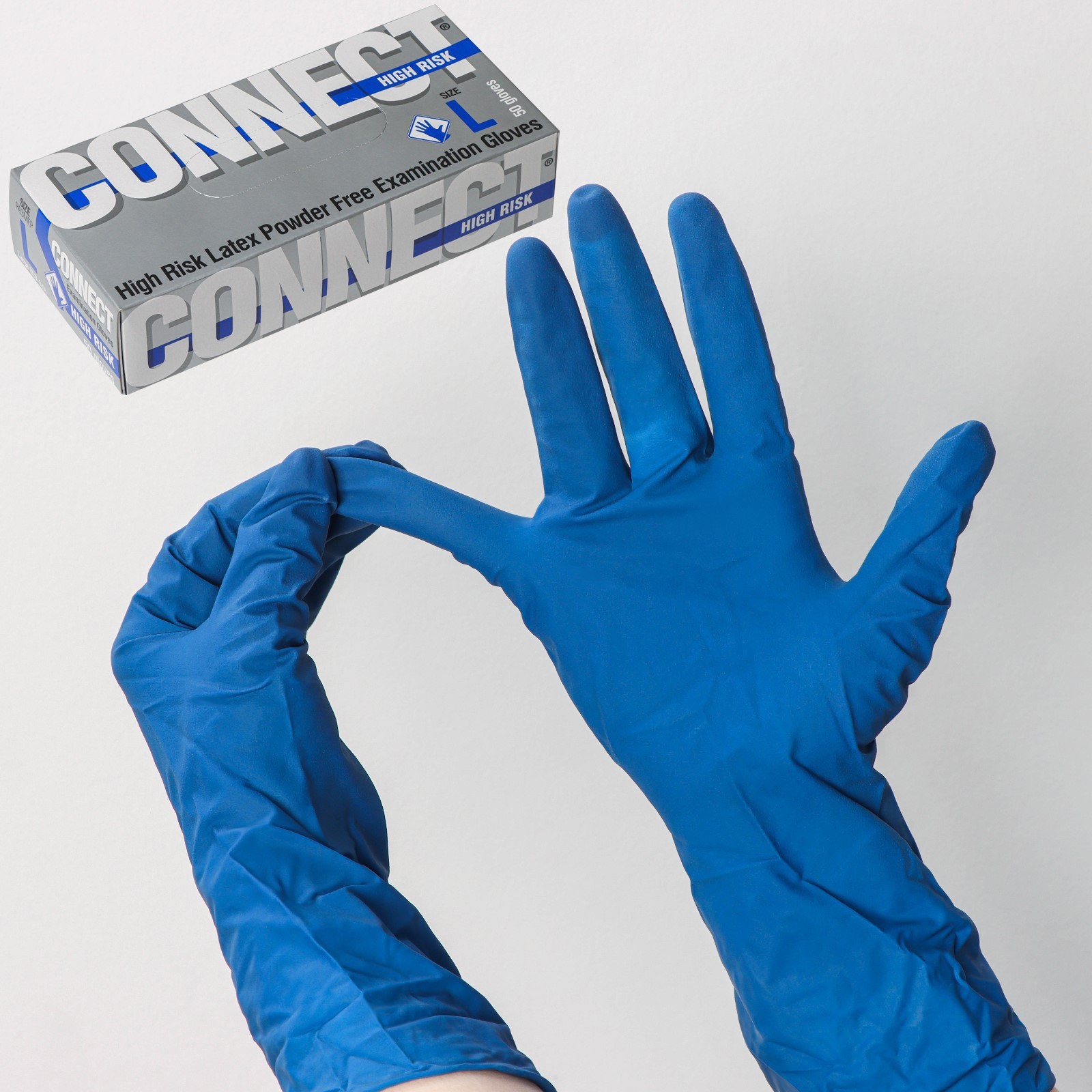 Перчатки латексные «high Risk», смотровые, нестерильные, размер L, 50 шт/уп (25 пар), цвет синий