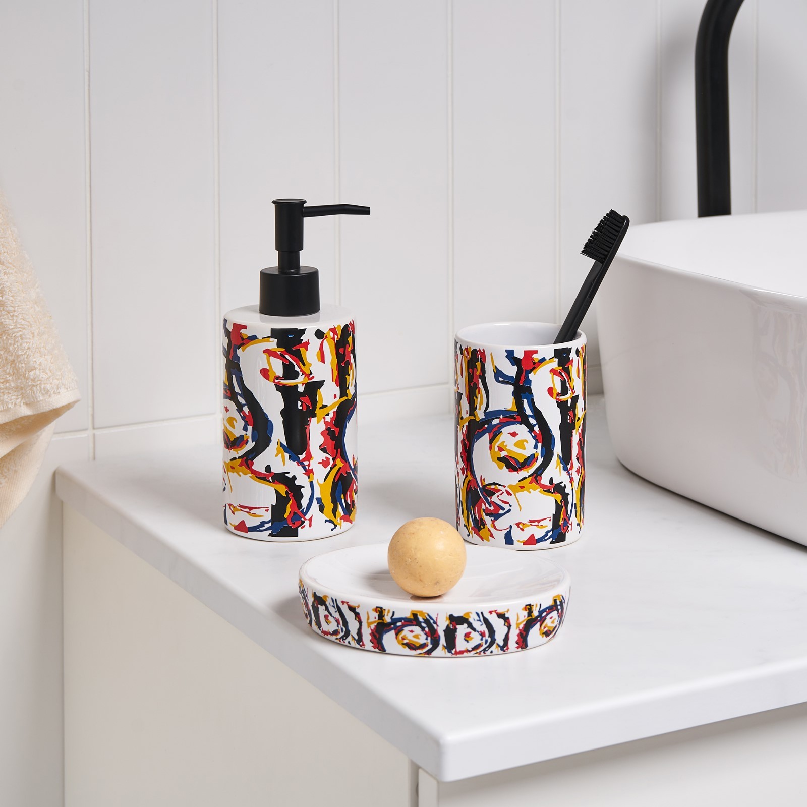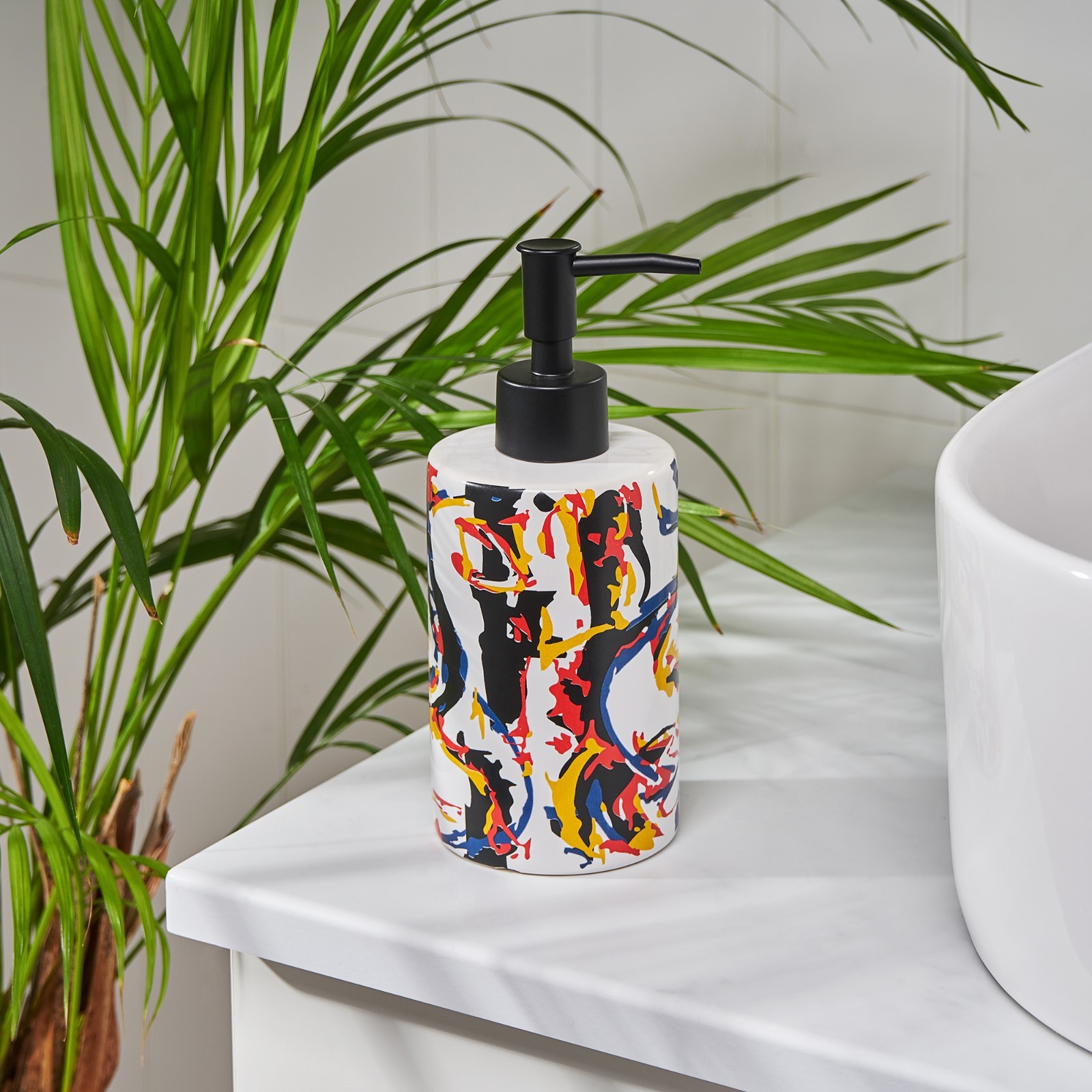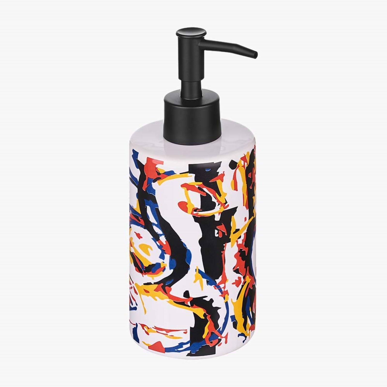Дозатор для жидкого мыла Expressia, 7,8х7,8х18 см, цвет белый-чёрный жёлтый