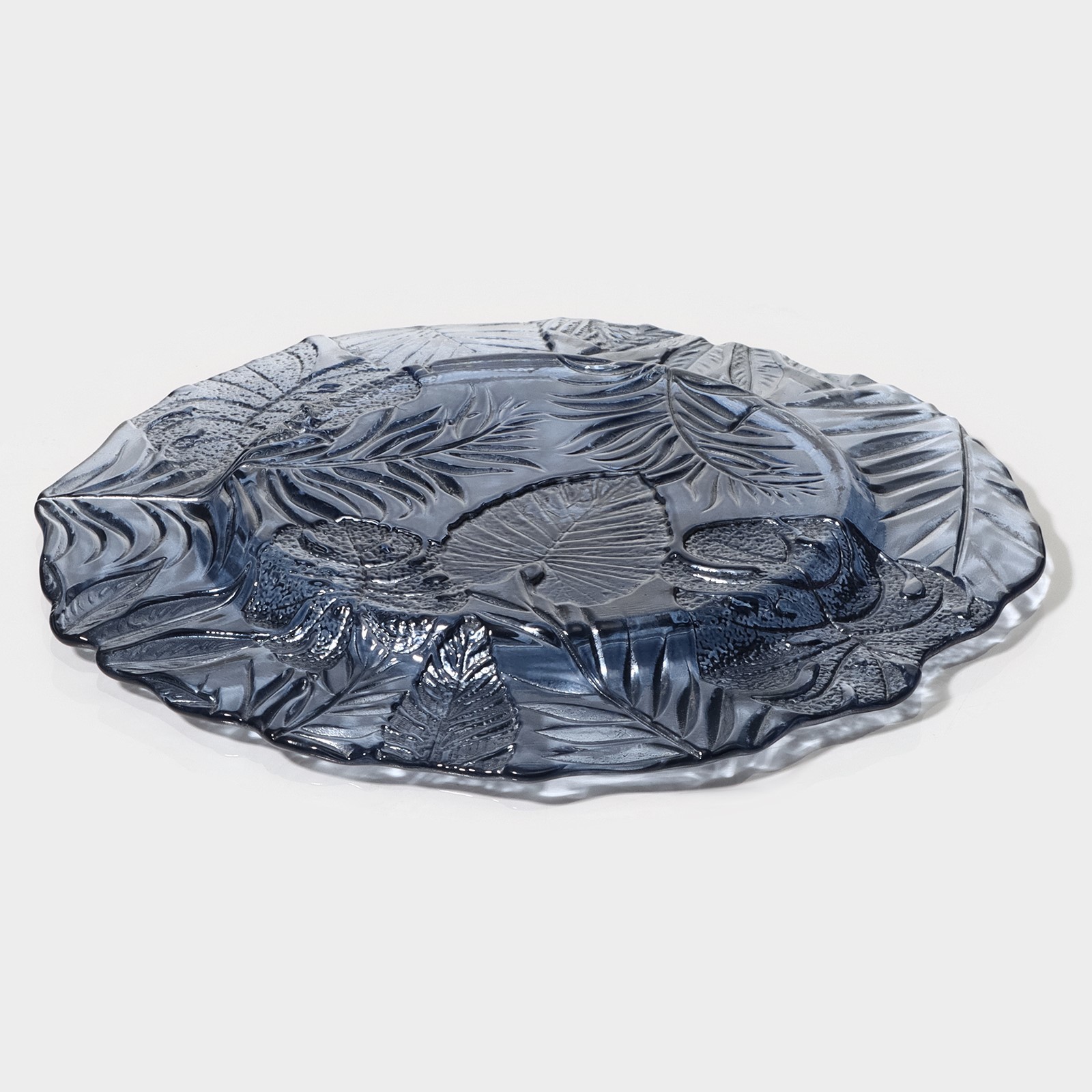 Тарелка стеклянная десертная «арабис», D=21,5 см, цвет голубой