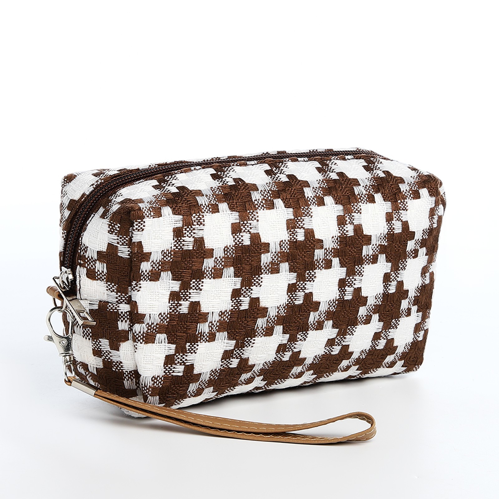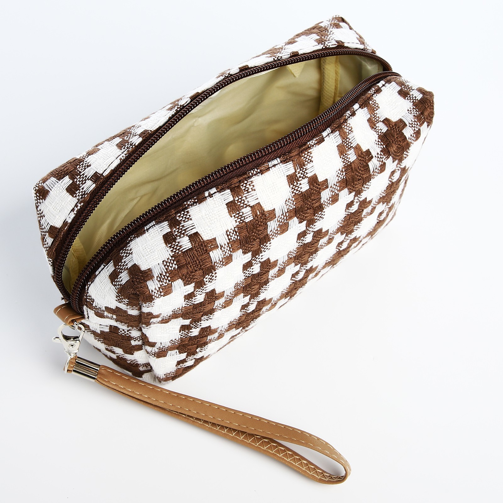 Косметичка на молнии, цвет белый/коричневый