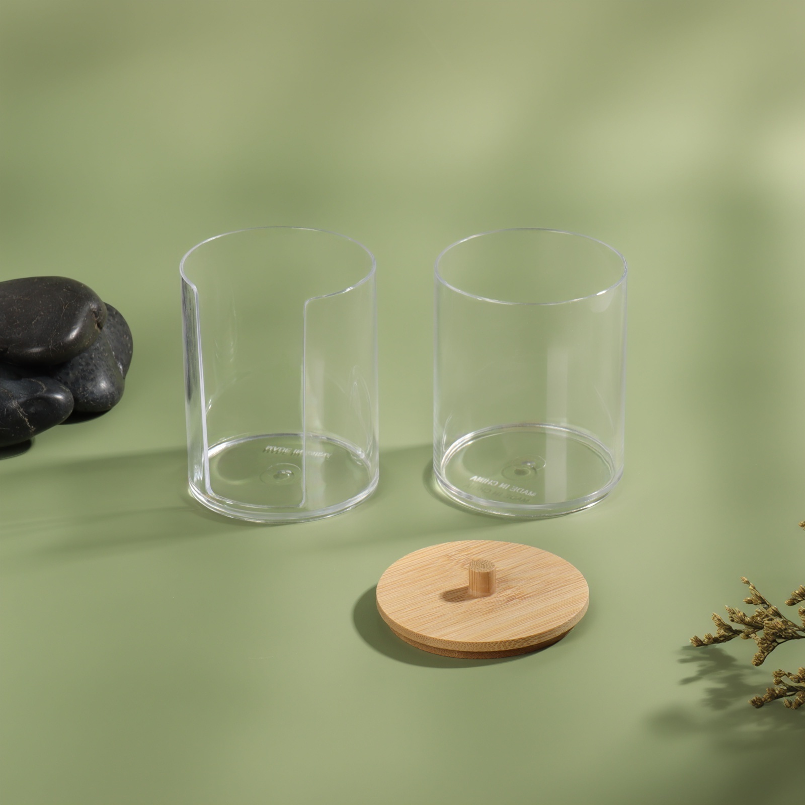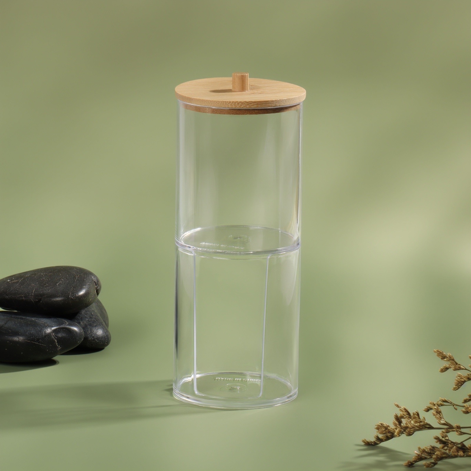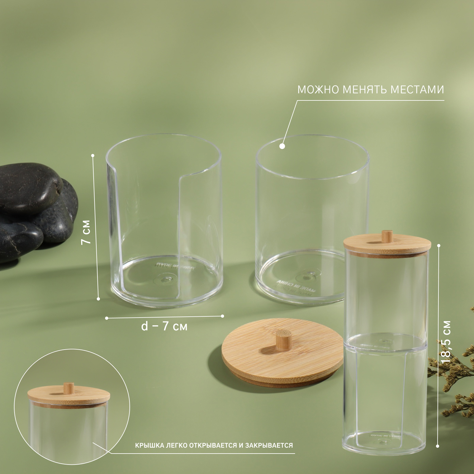 Органайзер для хранения ватных палочек и дисков «bamboo», с крышкой, 2 съёмные секции, 7 X 18,5 см, в картонной коробке, цвет пр