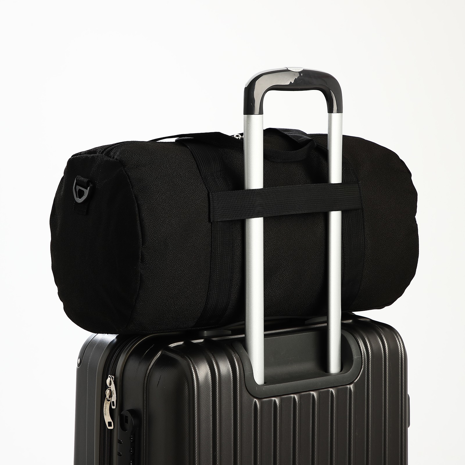 Сумка дорожная на молнии, наружный карман, держатель для чемодана, длинный ремень, цвет чёрный