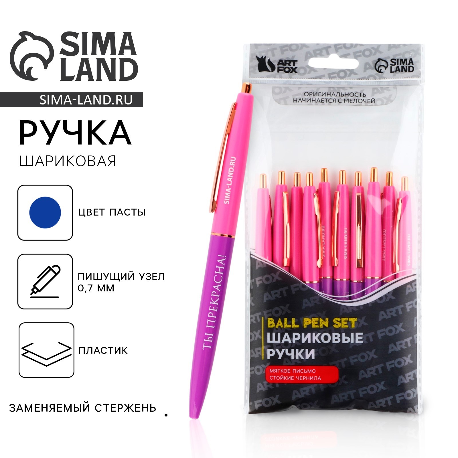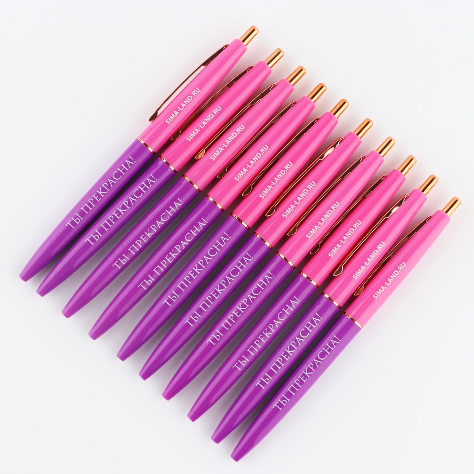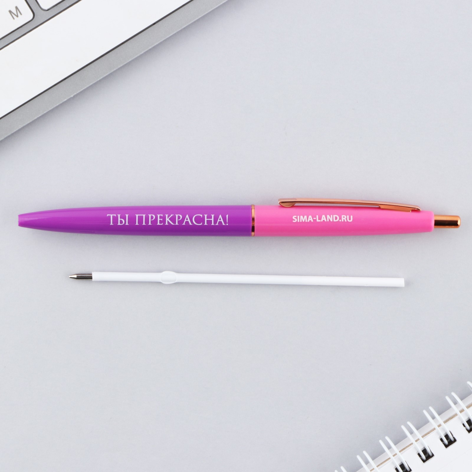 Ручка шариковая, синяя паста, 0.7 мм, автоматическая, пластик «ты прекрасна!»
