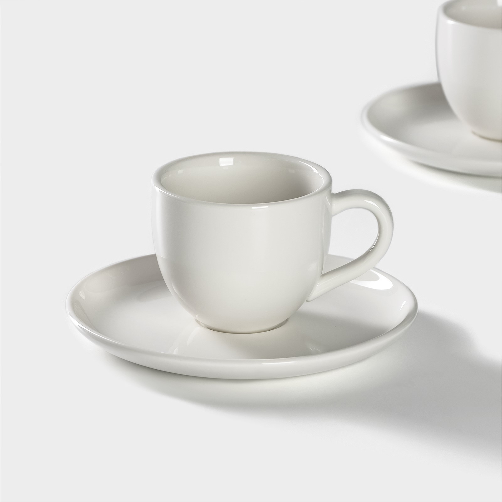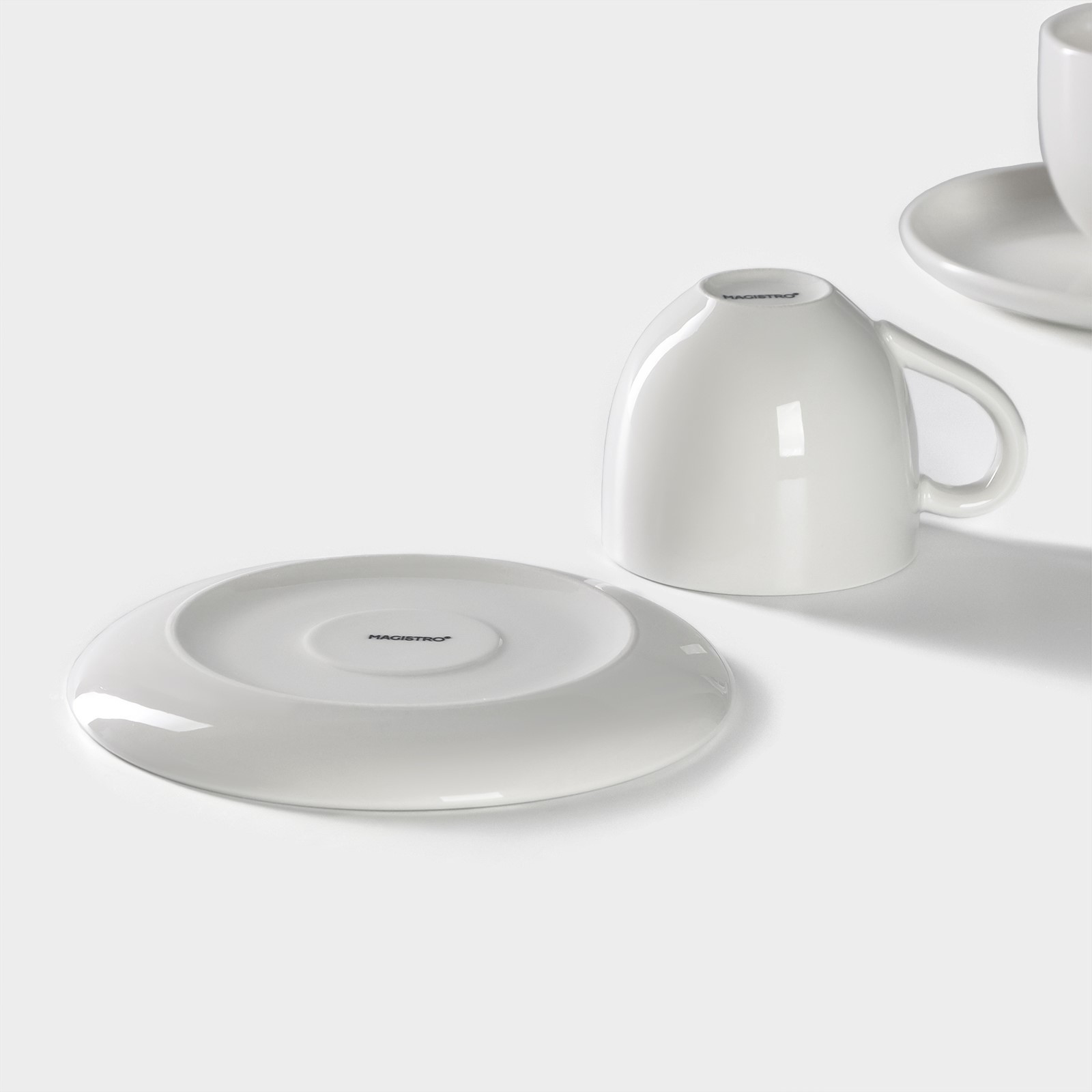 Набор чайный фарфоровый Magistro Mien, 4 предмета: 2 чашки 200 мл, 2 блюдца D=16 см, цвет белый