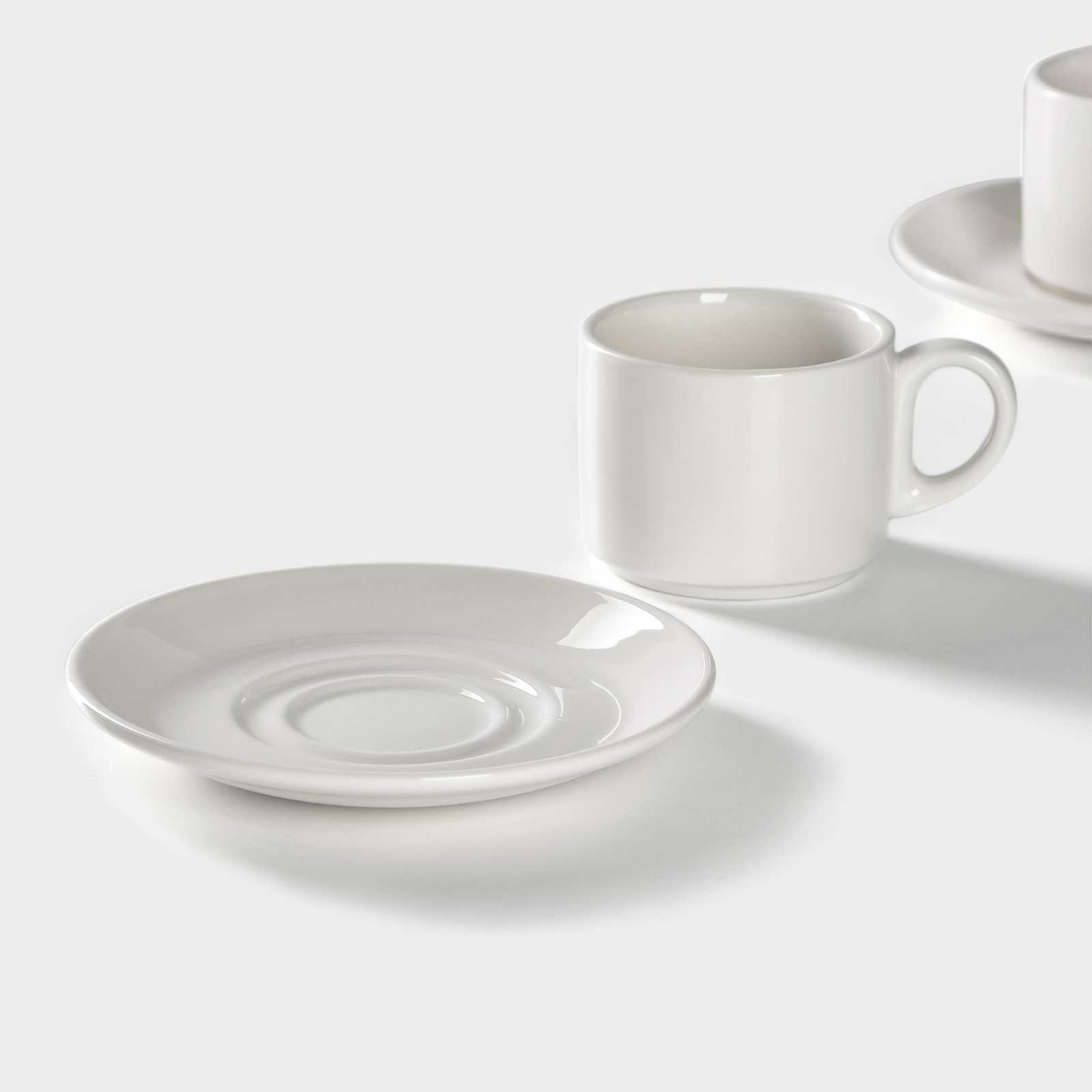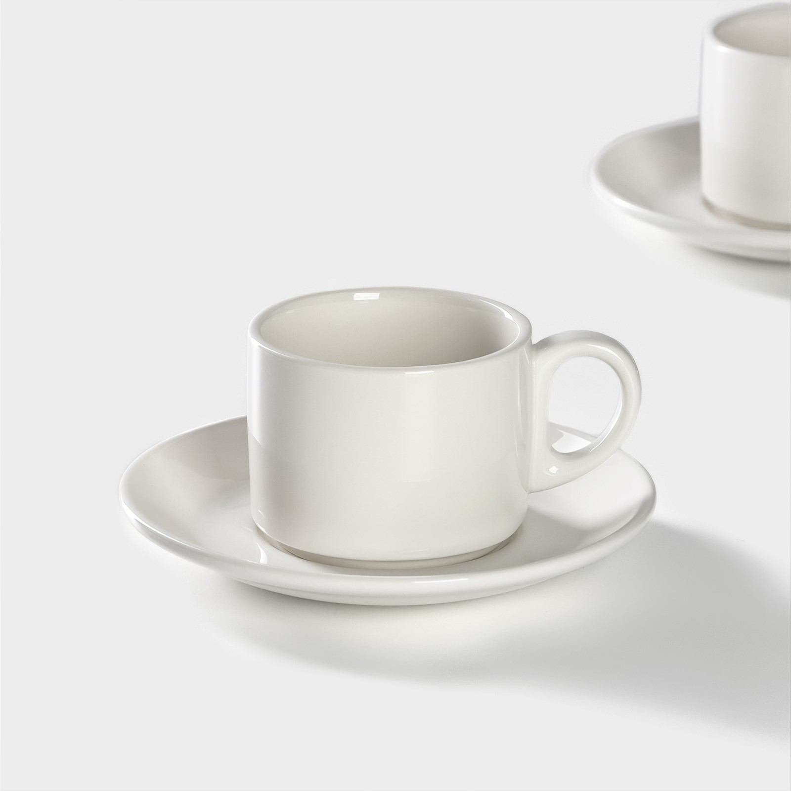 Набор чайный фарфоровый Magistro Basic Bistro, 4 предмета: 2 чашки 200 мл, 2 блюдца D=15 см, цвет белый
