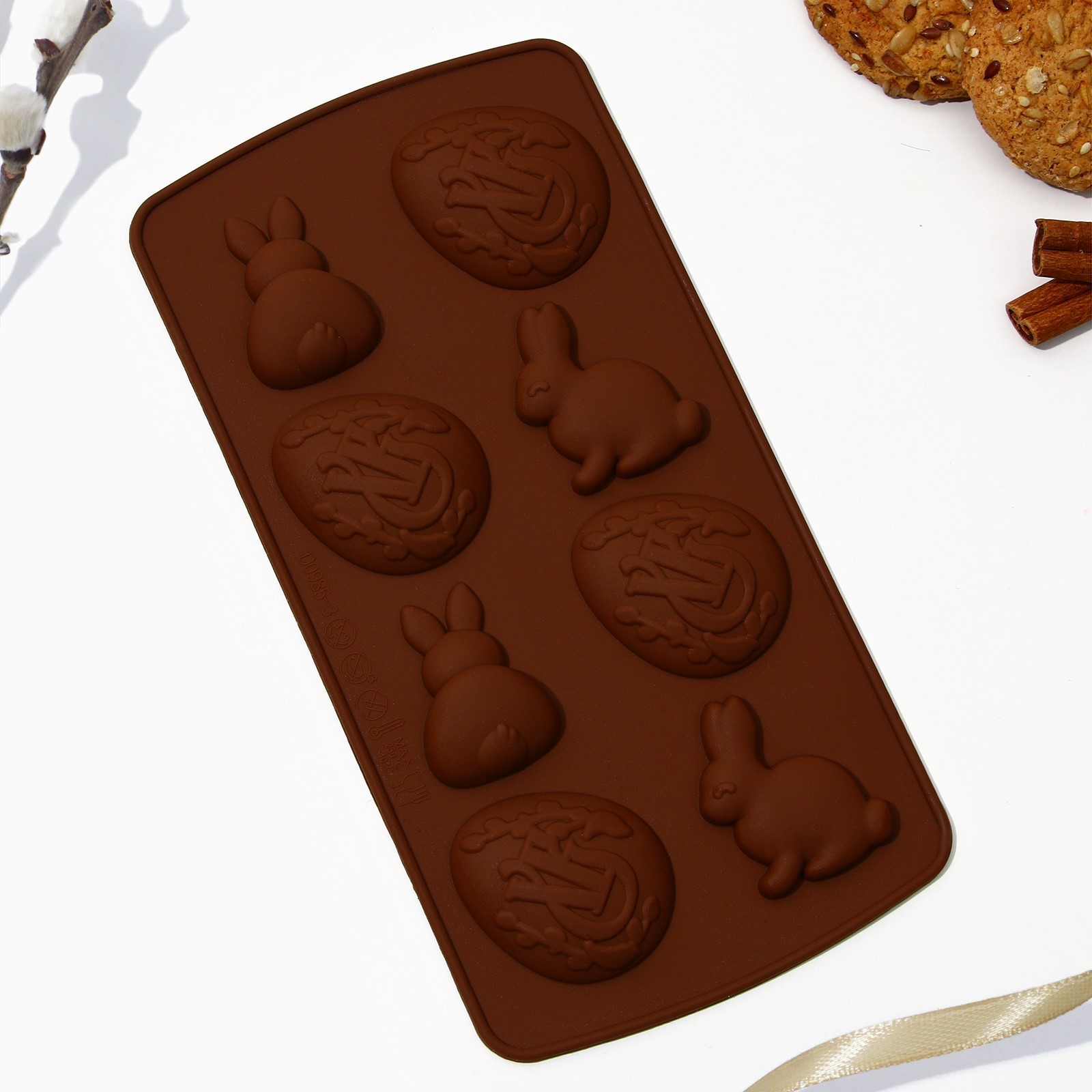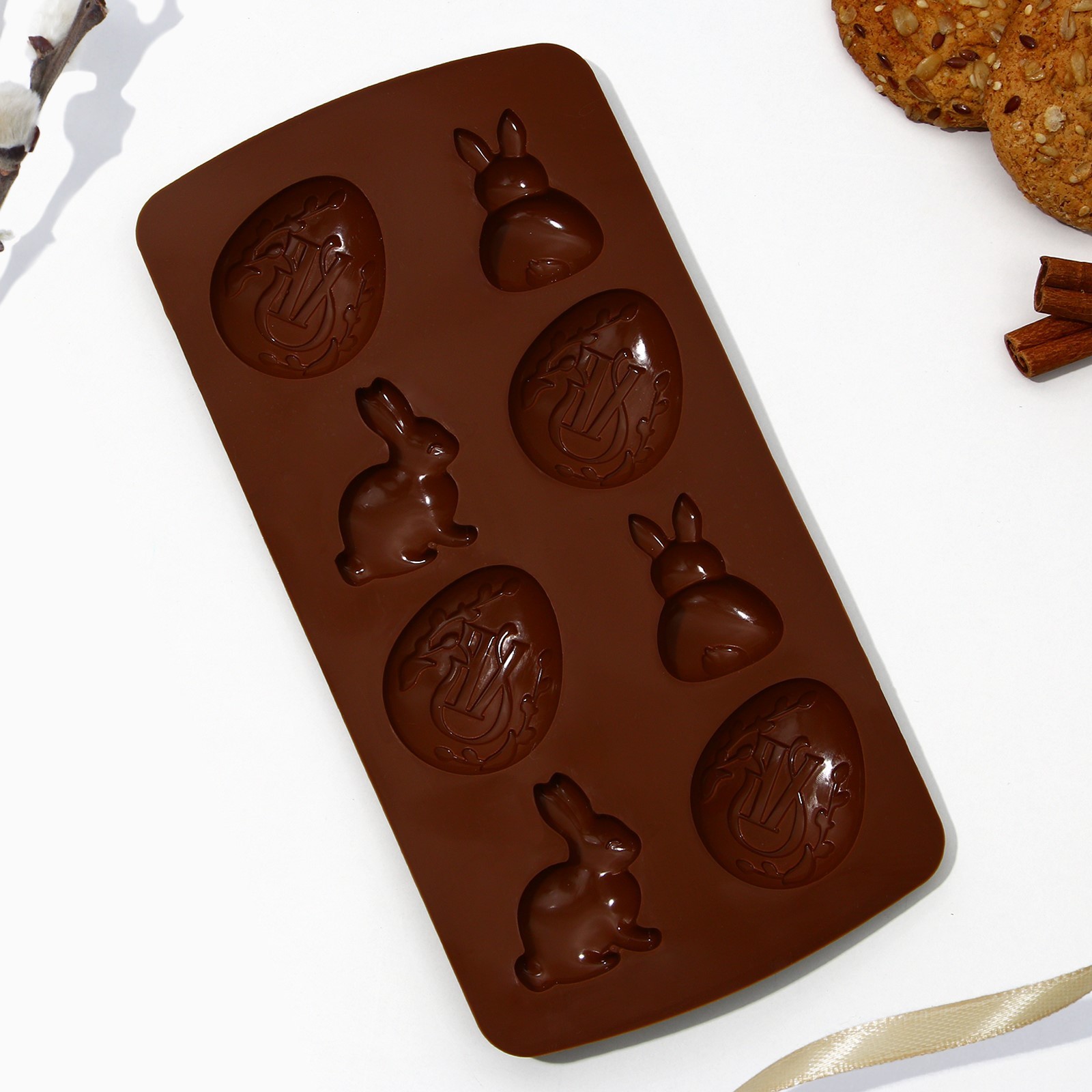 Силиконовая форма для выпечки «хв», 10.6 х 20.7 см.. Необычная силиконовая форма для запекания добавит волшебства любому празднику: пригодится для дня рождения, девичника, детского праздника, Нового года, Рождества и Пасхи - везде будут уместны и симпатичны. Они хороши как отдельные кондитерские изделия, так и как декор праздничного торта. Эта дизайнерская форма идеальна для муссовых пирожных, которые получаются детализированные и вынимаются легко. В ней можно также приготовить желе, мармелад, маффины или пирожные с разной интересной начинкой. Пищевой силикон - безопасный для здоровья, экологичный и прочный материал без запаха и вкуса. Удобен для мастики, изомальта и глазури. Его легко мыть, можно ставить в морозилку, использовать в микроволновой печи или нагревать в духовке до 230 градусов. Материал не токсичен, не вредит природе и прослужит долго. Цвет: Коричневый Форма: Яйцо Форма: Фигурная В наборе, шт.: 1 Фасовка, шт.: 1 Количество ячеек: 8 Крышка: Нет Материал: Силикон Тип покрытия: Без покрытия Ячейки: Да Тип формы: Для муссовых десертов Тип формы: Для печенья и пирожных Тип формы: Для кексов Разъёмная форма: Нет Тематика: Праздничная тематика Можно мыть в посудомоечной машине: Да Пищевой материал: Да Форма: Яйцо Форма: Фигурная  развернуть описание ▼