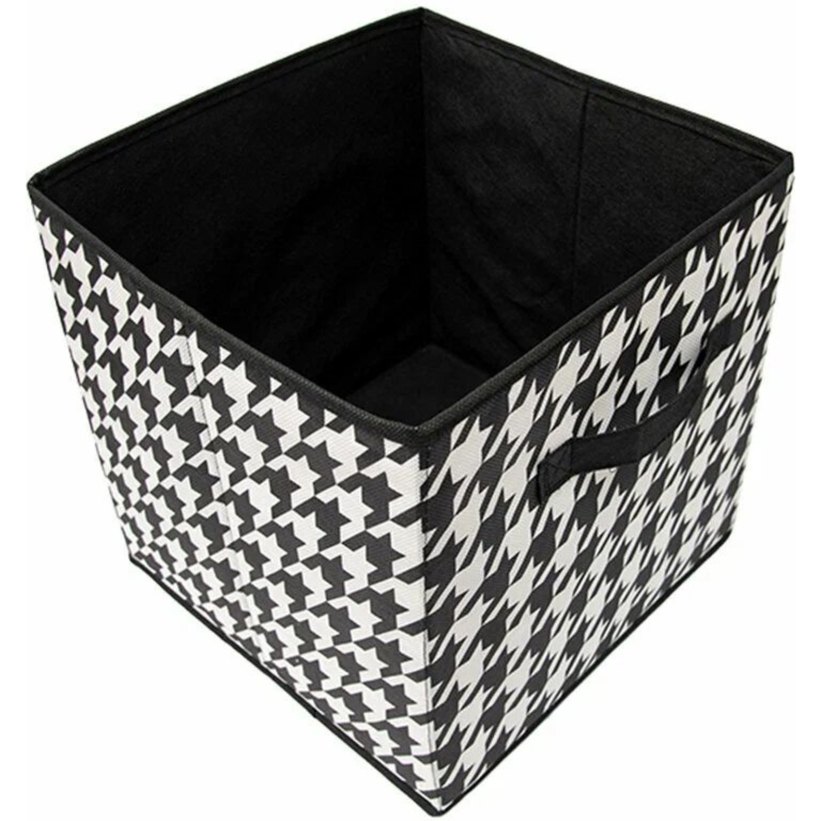 Короб-кубик для хранения «пепита», 30х30х30 см, чёрно-белый. Короб-кубик для хранения из коллекции «Пепита» от Handy Home идеально подойдет для бережного хранения вещей на полках шкафов, гардеробов, отлично впишется в квадратные секции стеллажей размером 33х33 см. Изготовлен из нетканого «дышащего» материала - спанбонда, который обладает множеством полезных свойств: - высокая воздухопроницаемость для вентиляции и свободной циркуляции воздуха; - однородная структура - гарантия равномерного распределения влаги и тепла и поддержания постоянного микроклимата; - высокая прочность, устойчивость к истиранию и сминанию, что делает материал практичным и долговечным; - не подвергается воздействию гнилостных бактерий и плесени; - практичный и безопасный для взрослых, детей и животных. Цвет: Чёрный Цвет: Белый Форма: Куб Ширина, см: 30 Высота, см: 30 Глубина, см: 30 Количество отделений: 1 Материал: Спанбонд Материал: Картон Форма: Квадрат, куб  развернуть описание ▼
