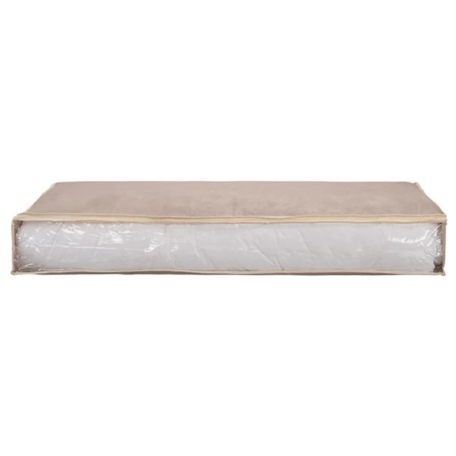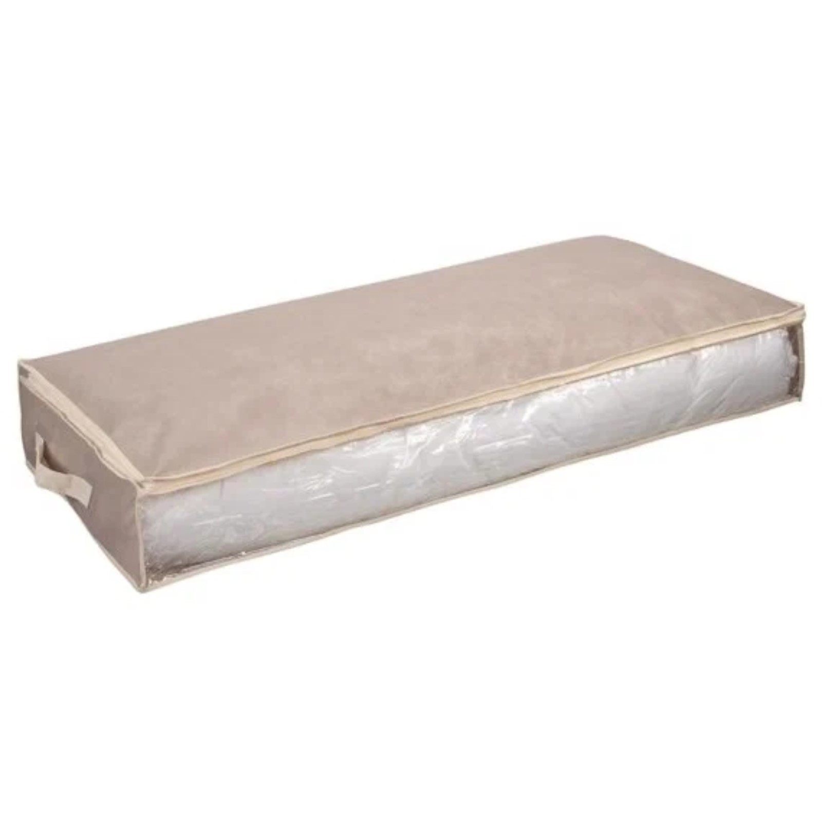 Кофр для хранения «вельвет», 100х45х15 см. Ищете удобный и практичный кофр? Тогда обратите внимание на этот удлиненный кофр для хранения! В нем можно хранить постельные принадлежности и сезонную одежду, а благодаря прозрачному окошку вы легко сможете просмотреть содержимое. Кофр закрывается на застежку-молнию, а сбоку имеется удобная ручка для переноски. Идеально подходит для тех, кому нужно хранить большое количество вещей в одном месте. Цвет: Бежевый Форма: Прямоугольная Ширина, см: 45 Высота, см: 15 Глубина, см: 100 Количество отделений: 1 Материал: Спанбонд Форма: Прямоугольник  развернуть описание ▼