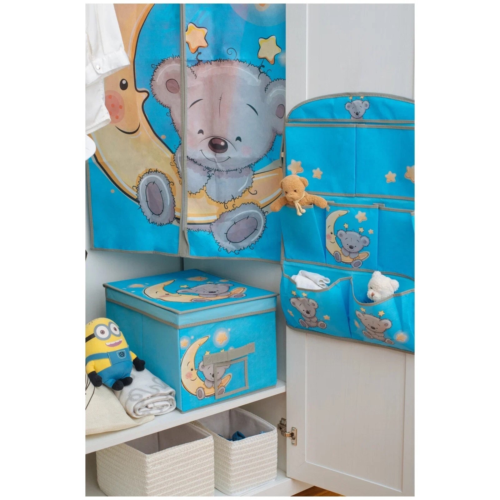 Кофр подвесной «мишка», 7 карманов, 60х40 см, голубой
