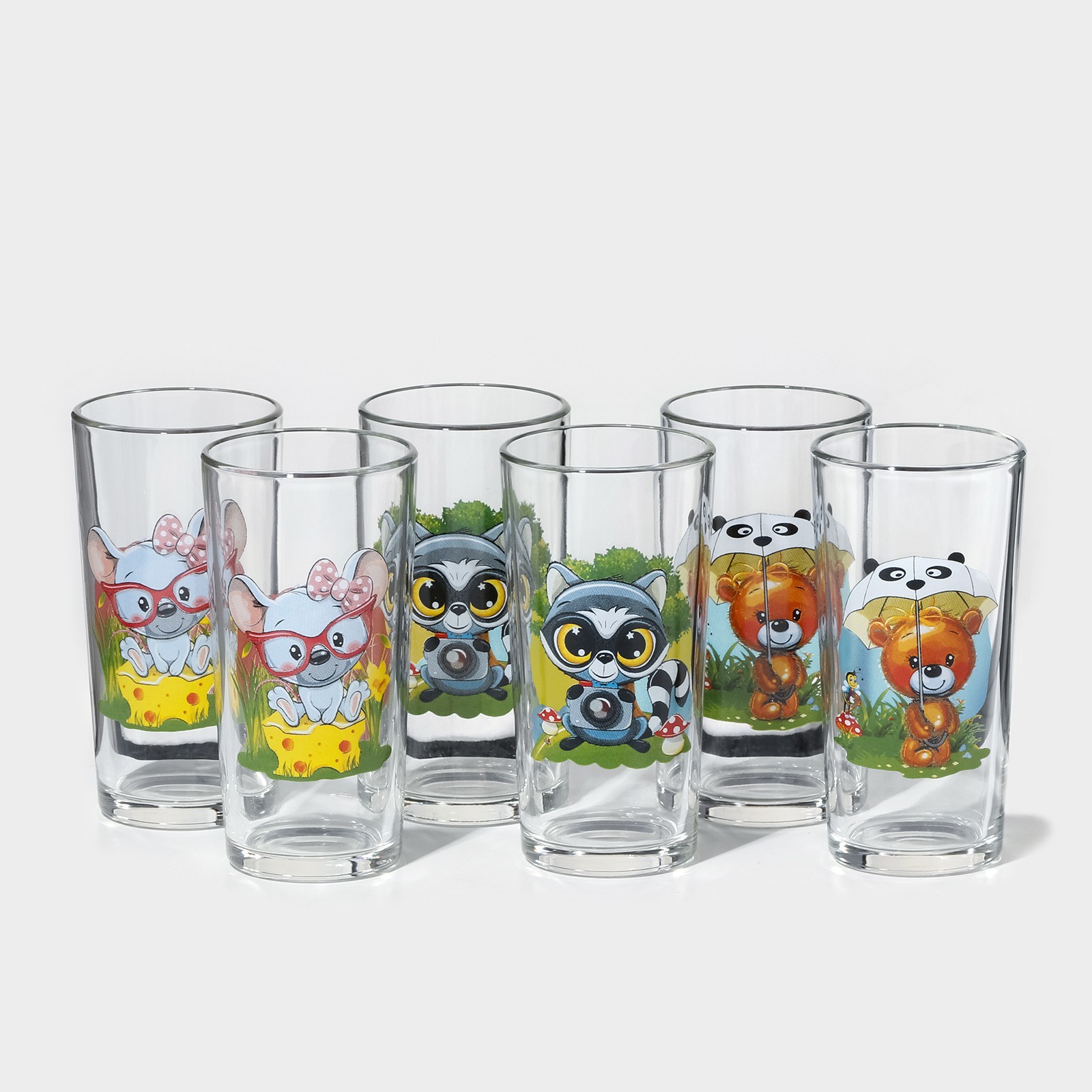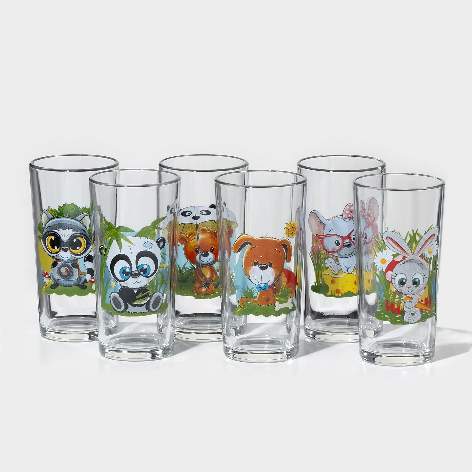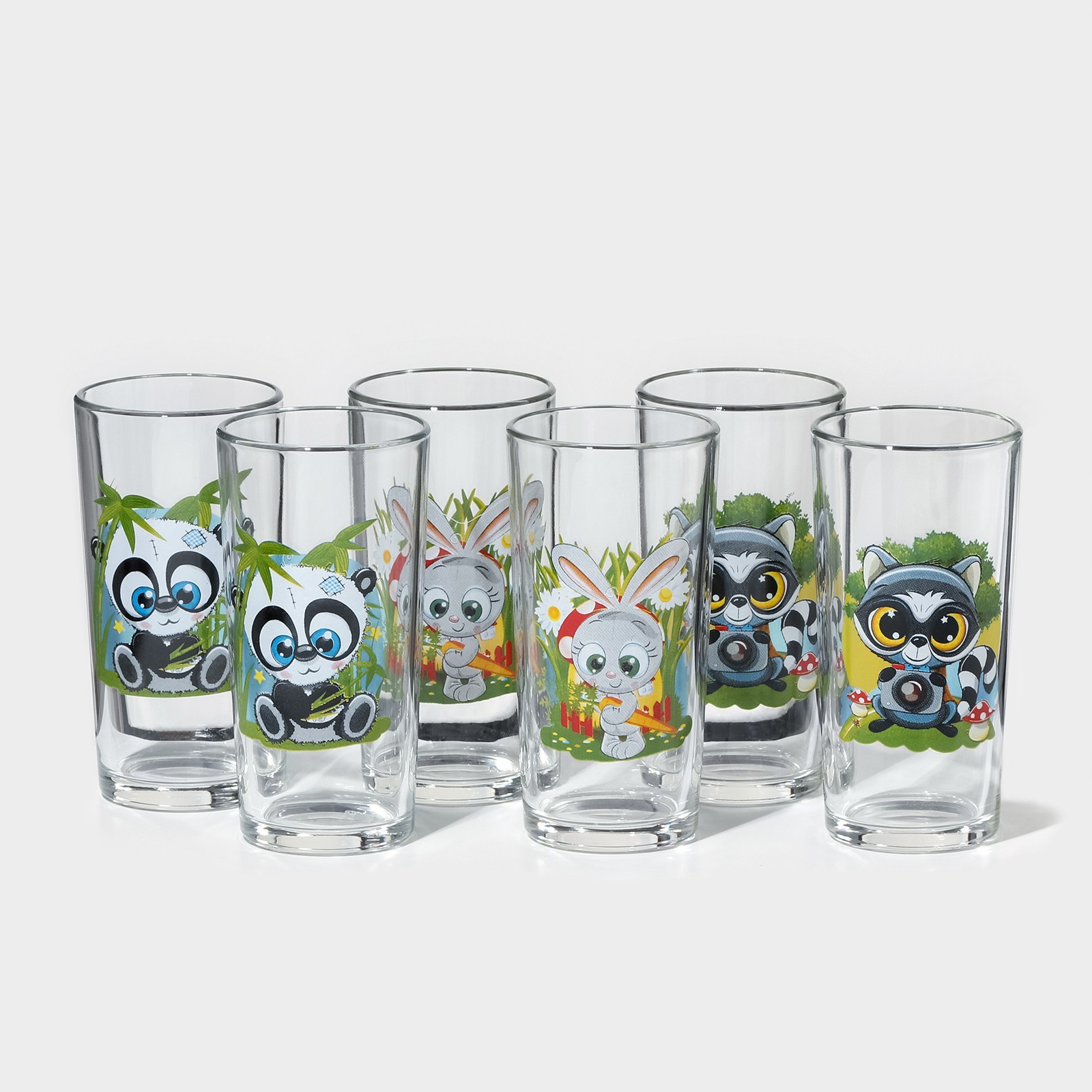 Набор стаканов «веселые зверюшки», стеклянный, 230 мл, рисунок микс