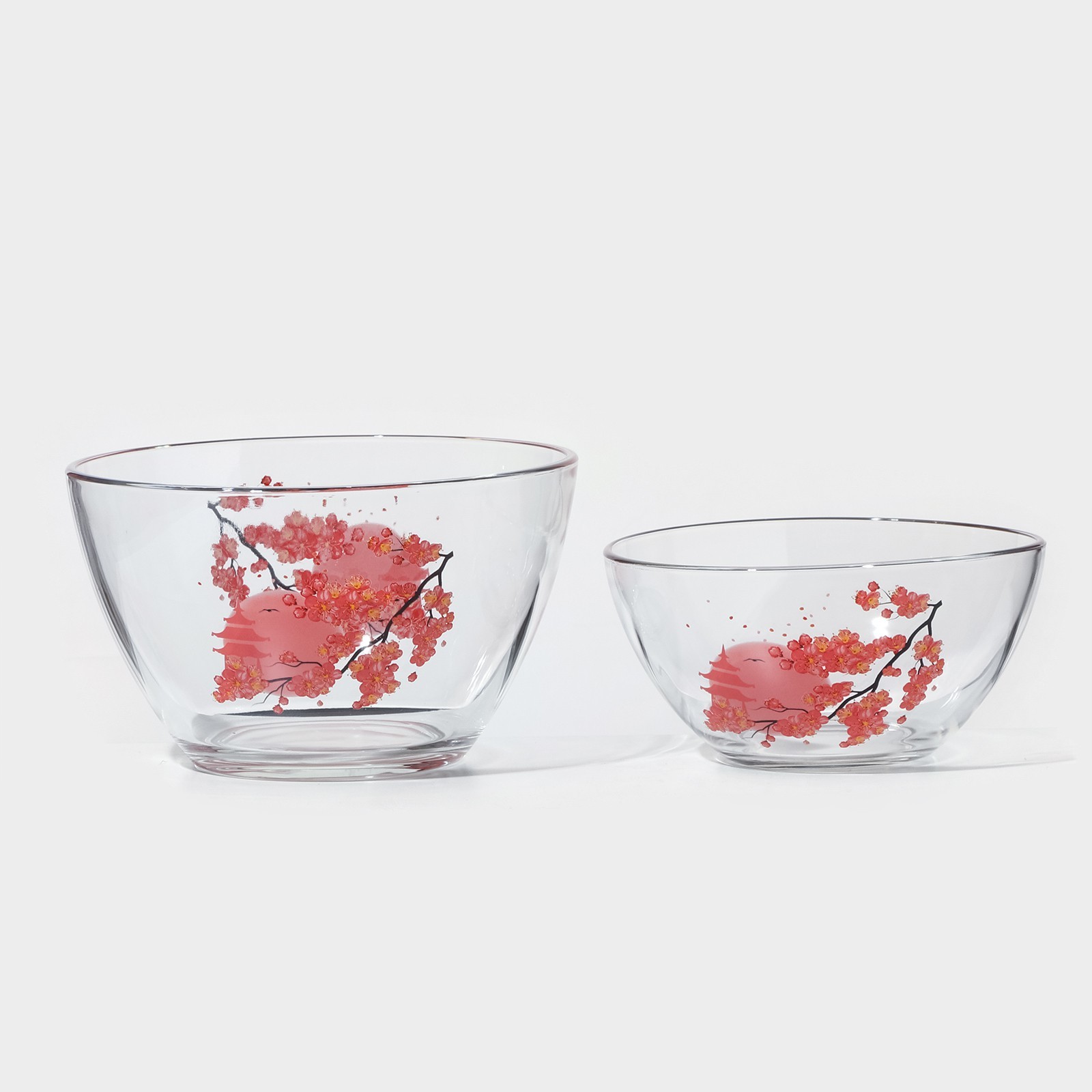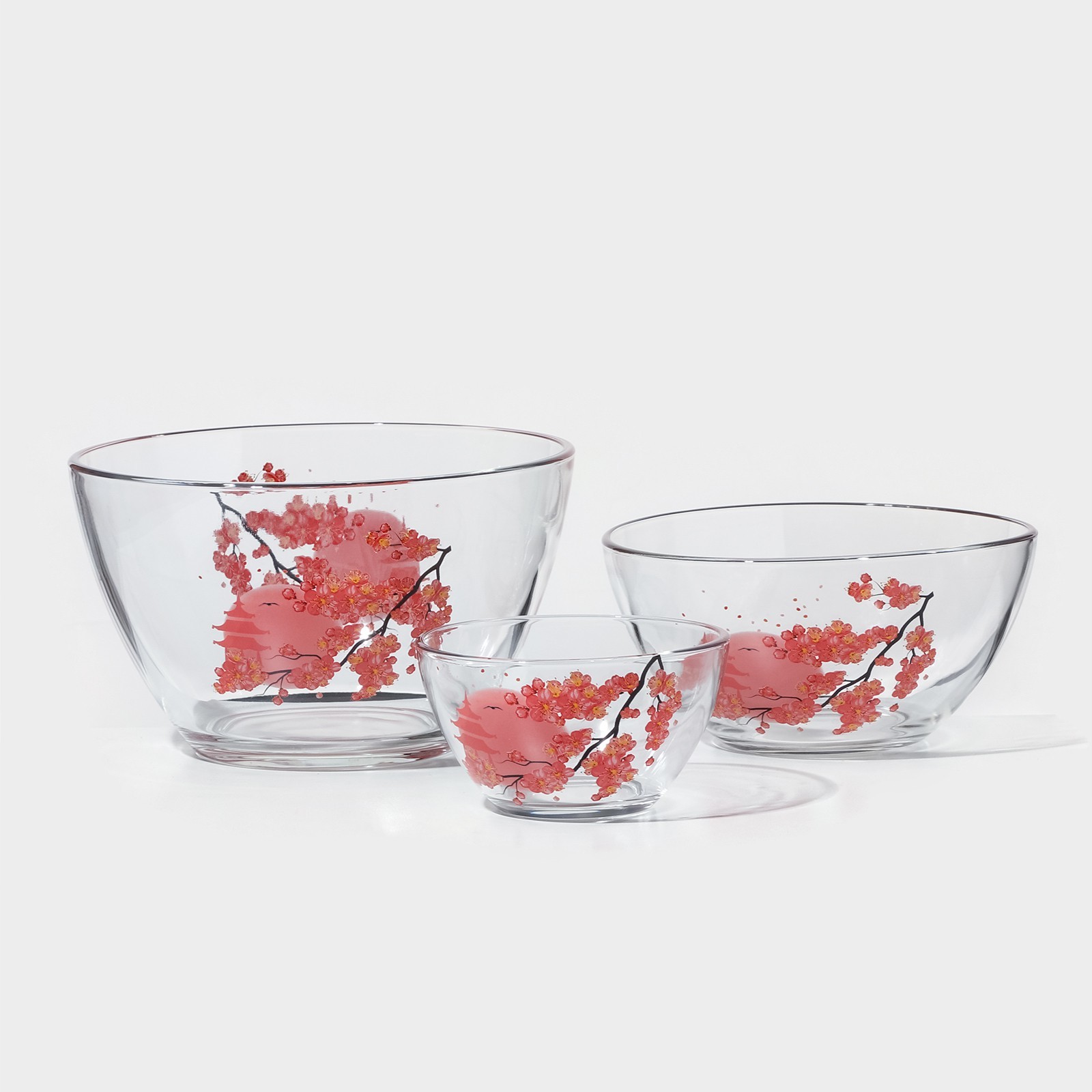 Набор салатников «веточка сакуры», стеклянный, 3 шт: 1.75 л, 0.8 л, 0.25 л. Цвет: Прозрачный Цвет: Розовый Форма: Круглая Диаметр, см: 11 Диаметр, см: 16 Диаметр, см: 18.5 Объём, л: 0.25 Объём, л: 0.8 Объём, л: 1.75 В наборе, шт.: 3 Тематика: Цветочно-растительная Крышка: Нет Материал: Стекло Температурное ограничение: Нет Можно мыть в посудомоечной машине: Да Можно использовать в СВЧ-печи: Да Текстура: Гладкая Особенности: Без особенностей Для горячего: Нет Форма: Круг, шар, цилиндр  развернуть описание ▼
