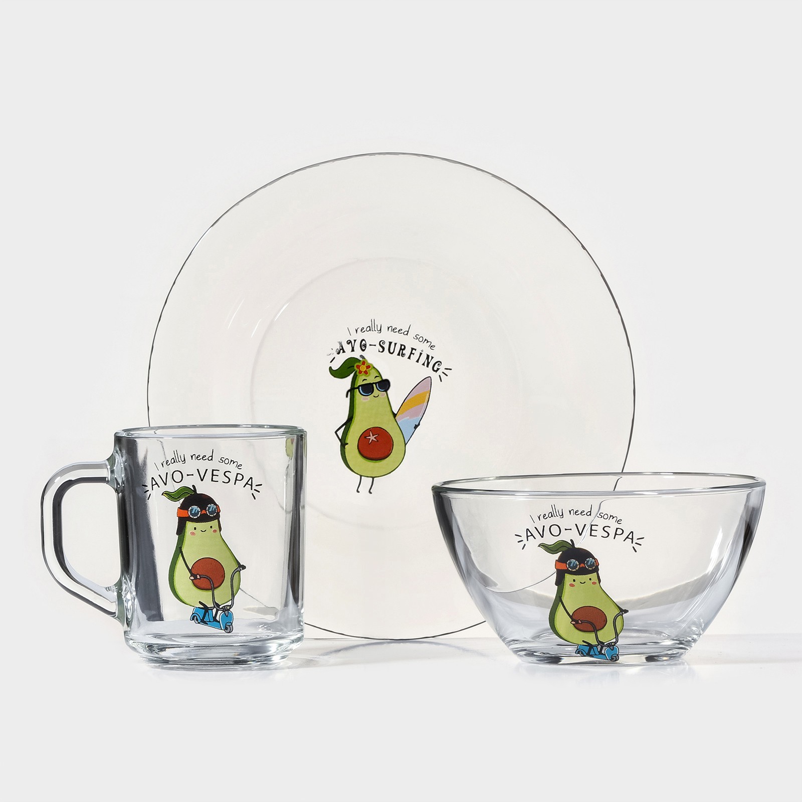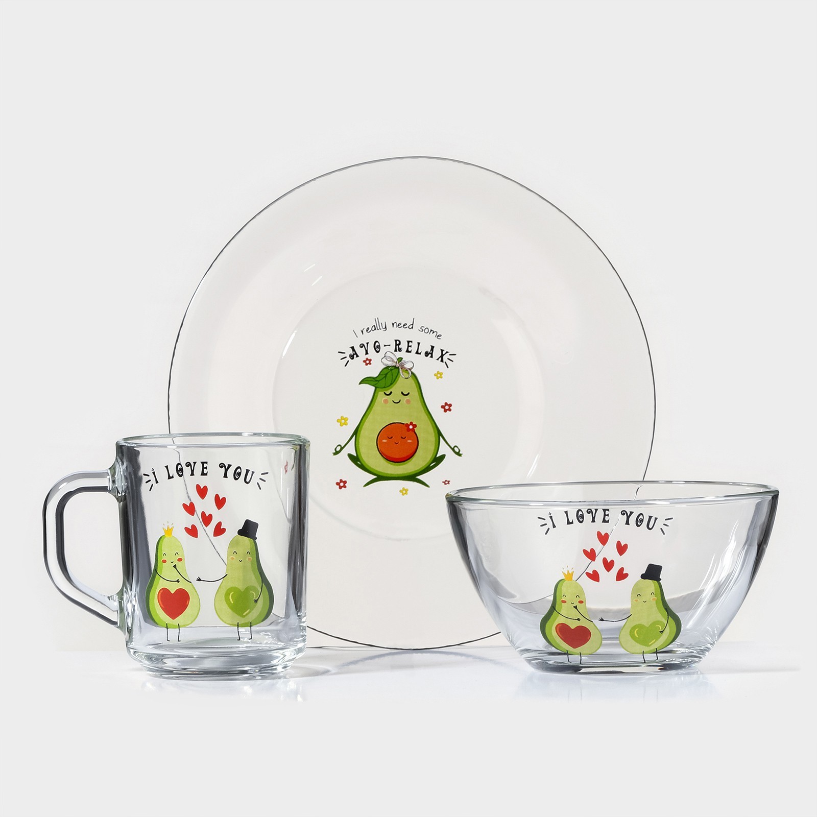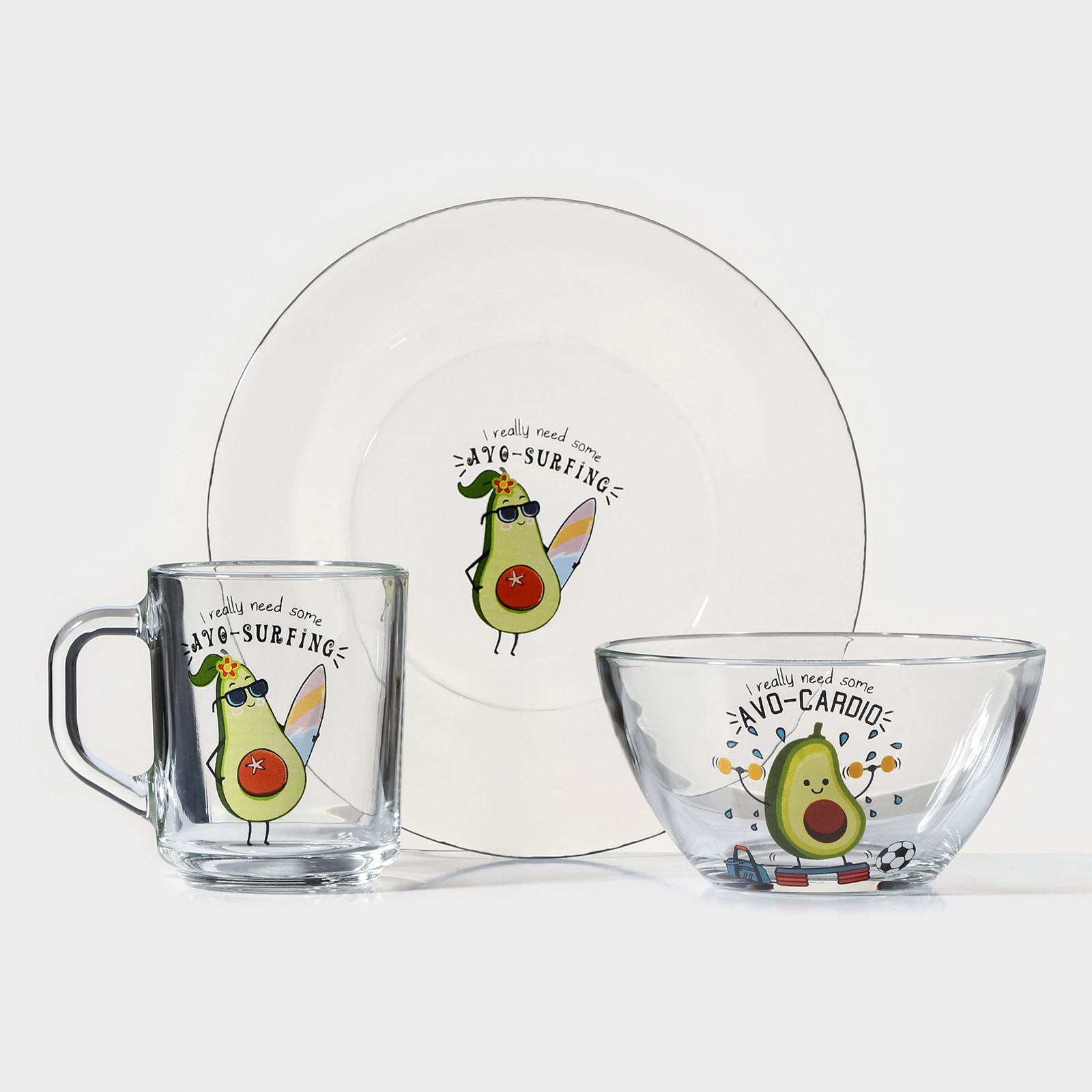 Набор для завтрака «авокадо», 3 предмета: кружка 200 мл, салатник 450 мл, тарелка, рисунок микс