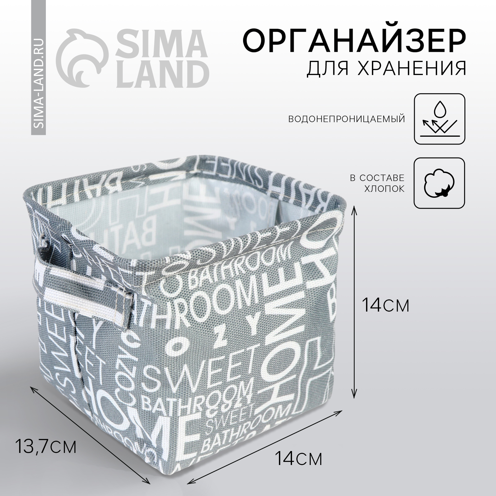 Органайзер для хранения белья, кофр водонепроницаемый «паттерн», 14,5 х 13,7 х 14 см.. Органайзер для хранения белья, кофр водонепроницаемый «Паттерн», 14, 5 х 13, 7 х 14 см. Кофр для хранения отлично подойдет для ванной комнаты, для хранения постельного белья, повседневной одежды, полотенец, нижнего белья и прочих вещей. Ваши вещи будут защищены от пыли и моли, а также будут аккуратно сложены в шкафу, не занимая много места. Благодаря своей универсальностью его можно использовать как корзина для игрушек. Кофр водонепроницаемый и подходит для ванной комнаты. Цвет: Серый Цвет: Белый Форма: Квадратная Размер, см: 14 х 14 Длина, см: 14.5 Ширина, см: 13.7 Высота, см: 14 Глубина, см: 14 Количество отделений: 1 Количество ячеек: 1 Крышка: Нет Материал: Хлопок Материал: Полиэтилен Материал: Полиэстер  развернуть описание ▼