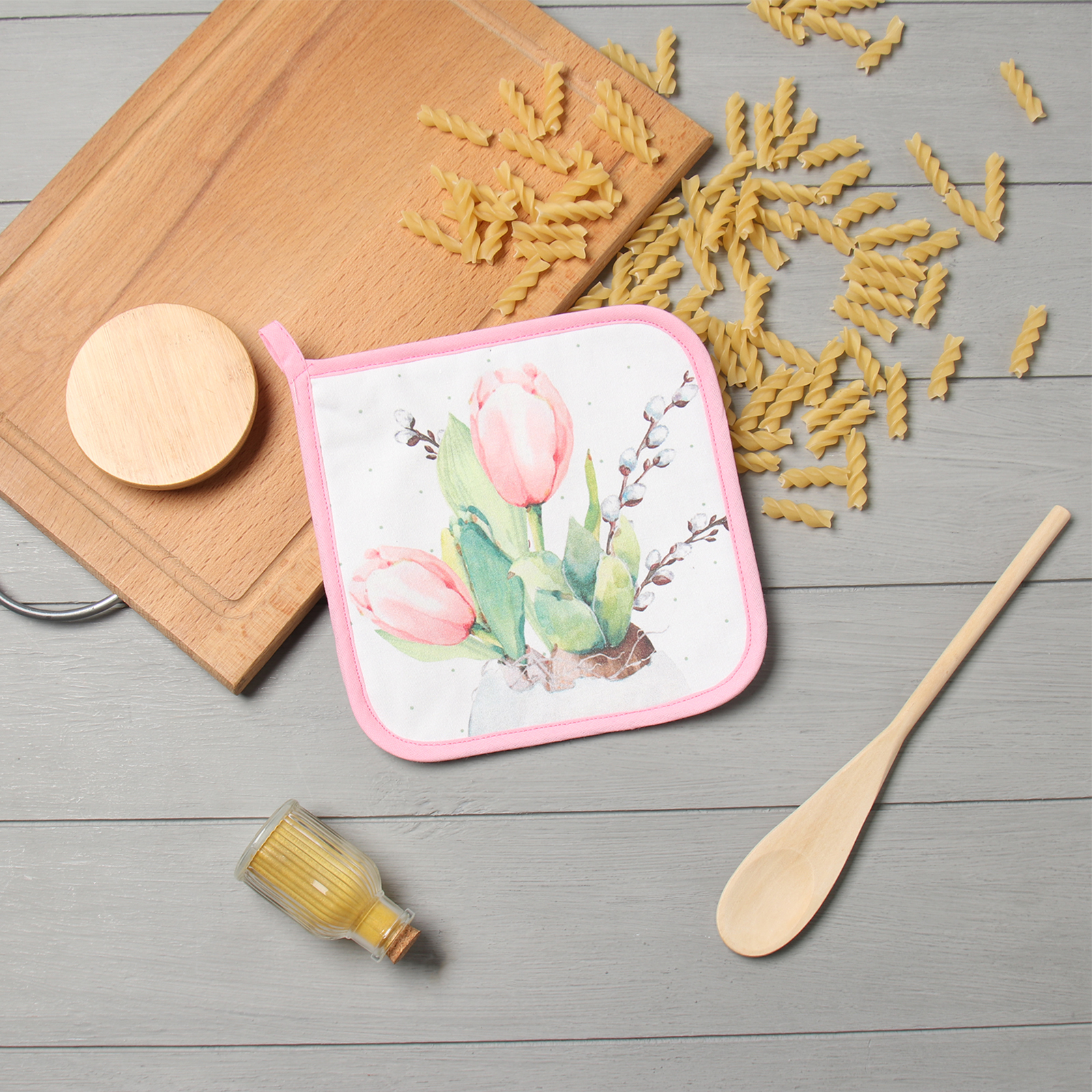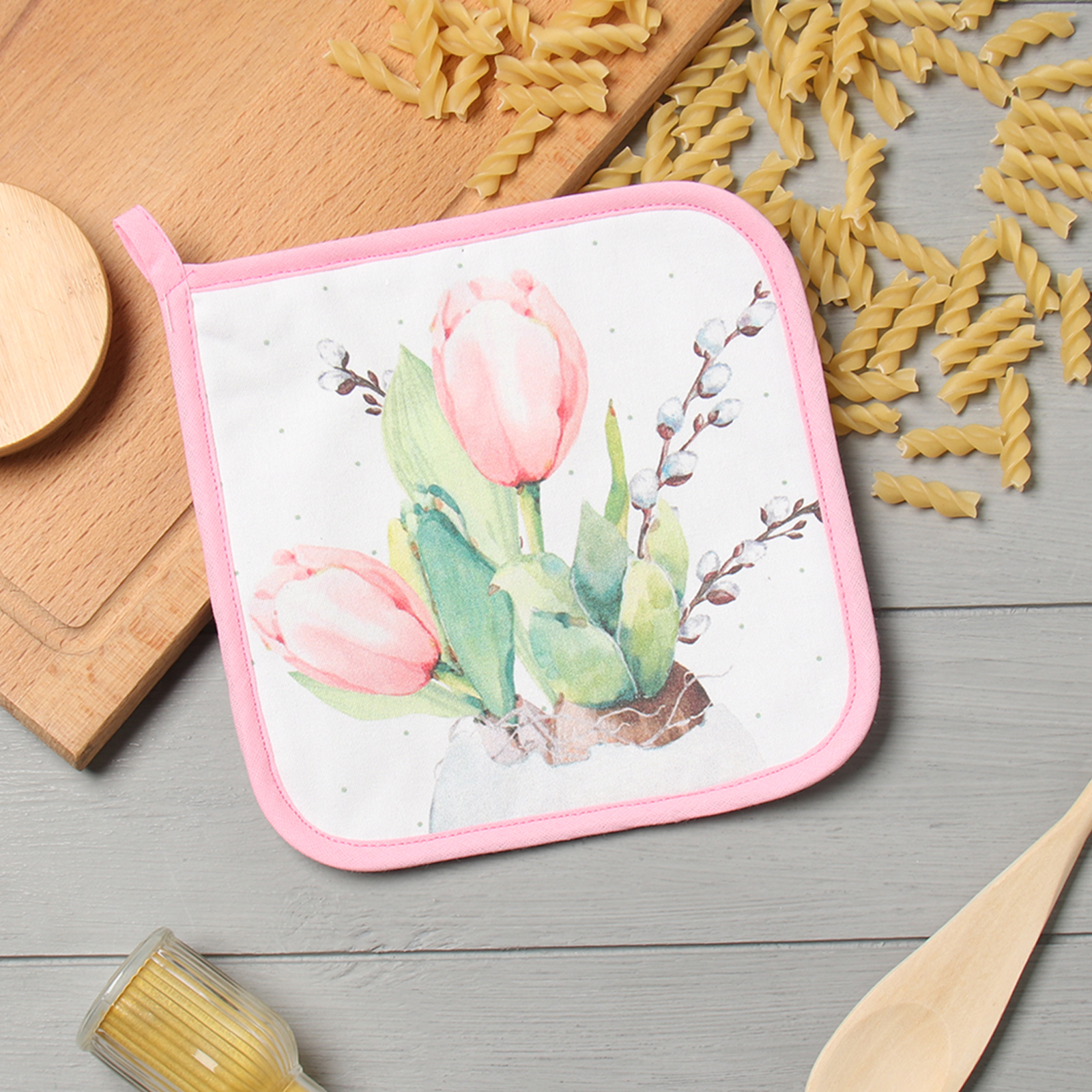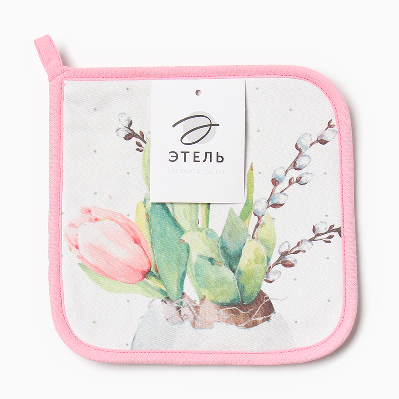 Прихватка этель"тюльпаны" 19х19 саржа,100% х/л,ватин 250г/м2