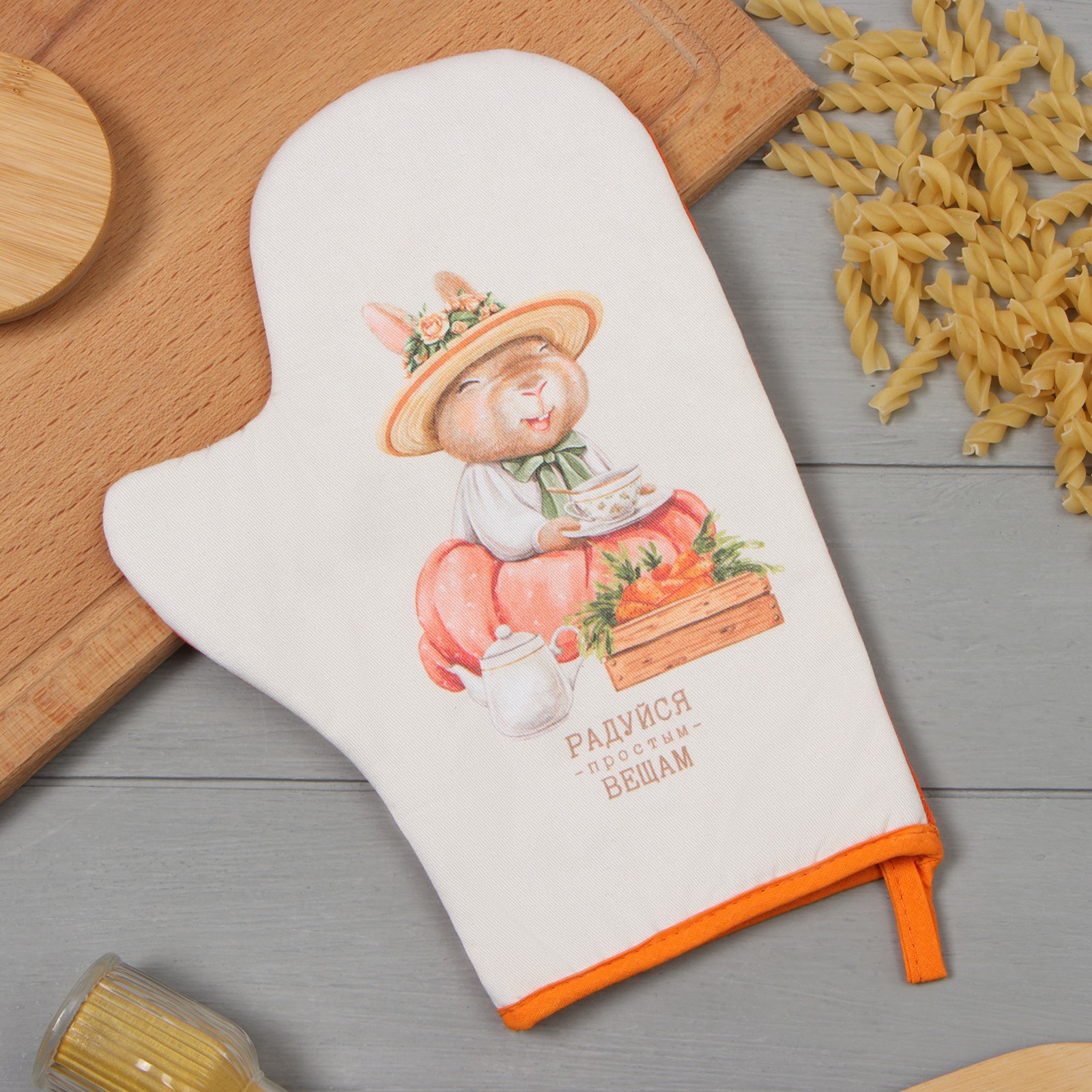 Варежка-прихватка этель "кролики" 20х28см,саржа, 100% х/л, ватин 250г/м2
