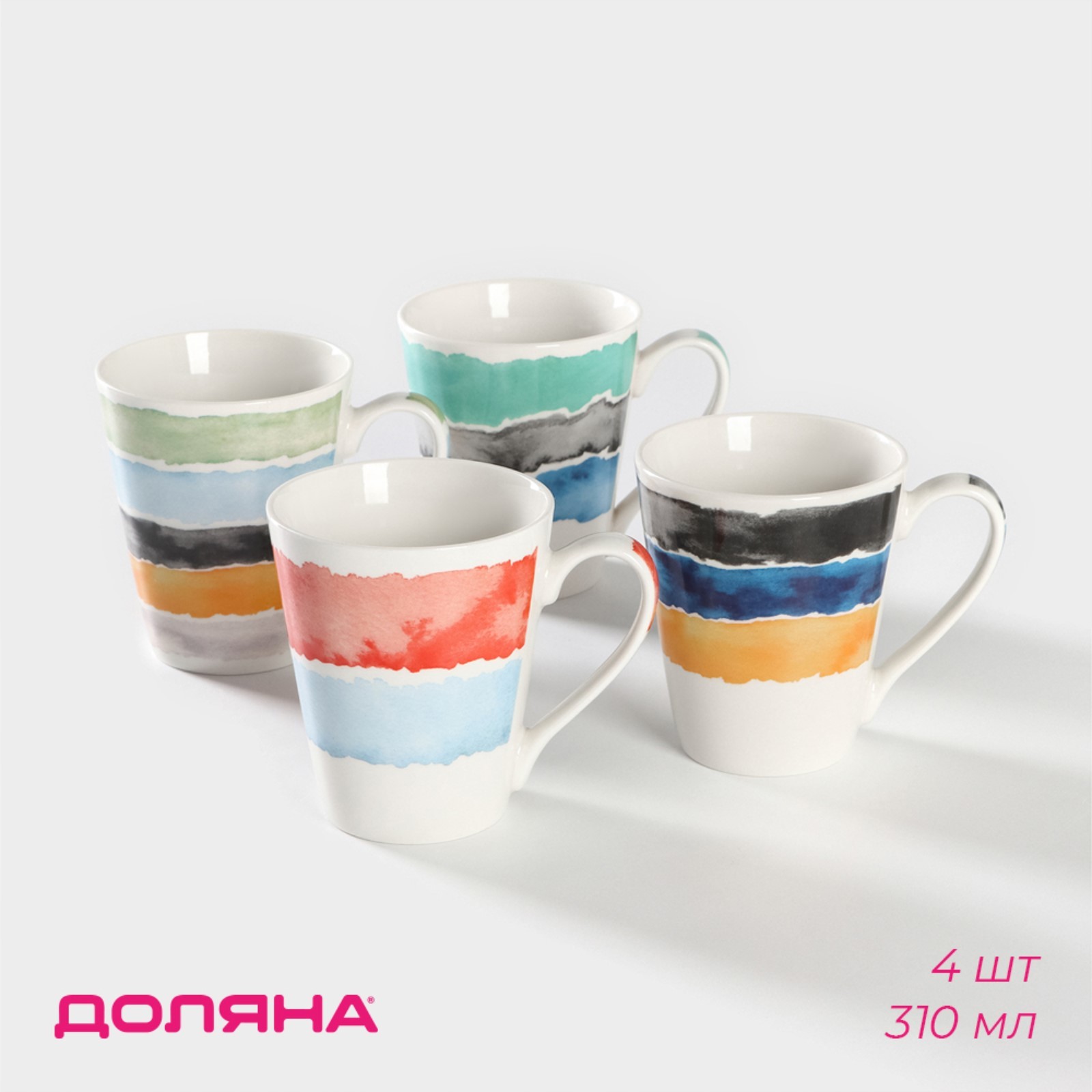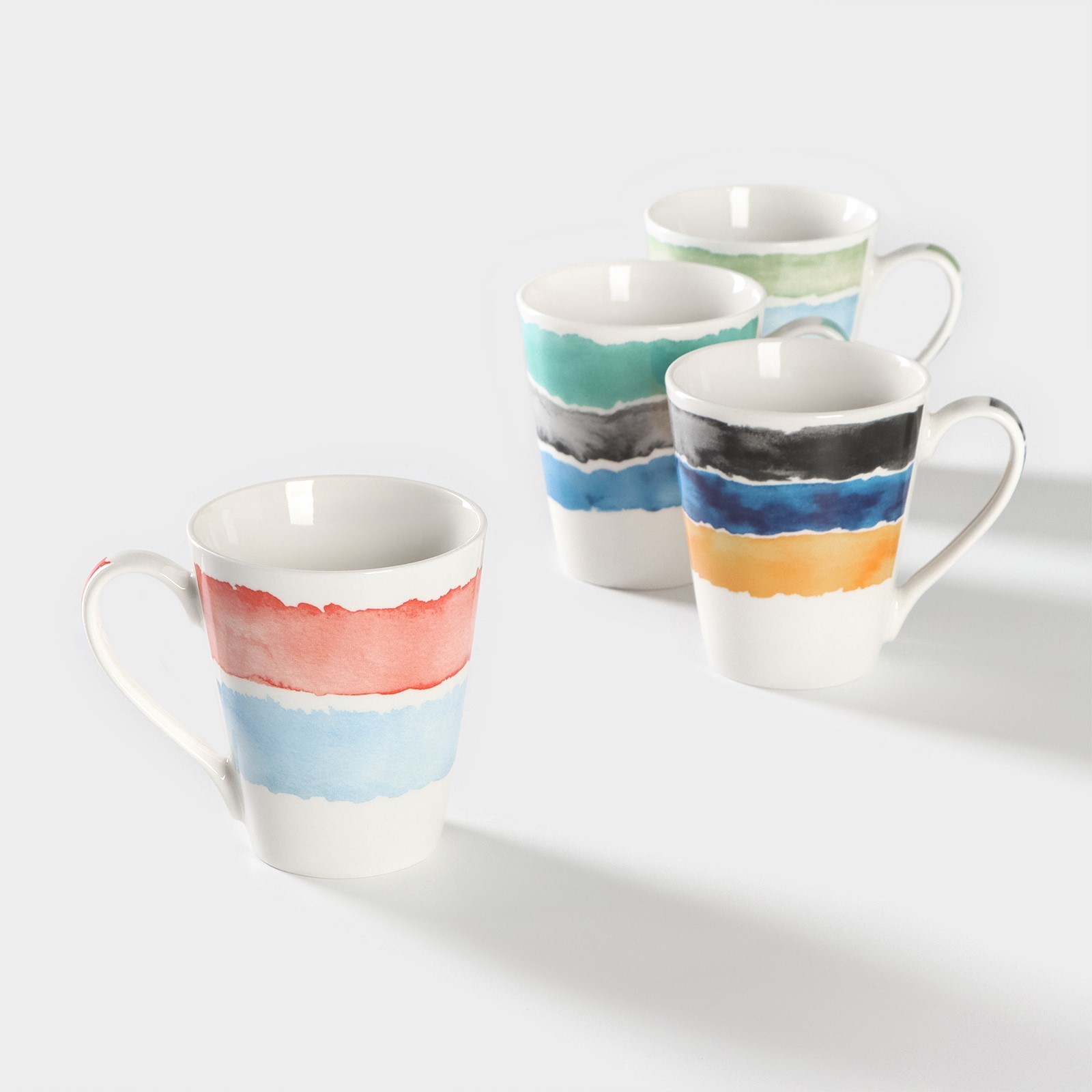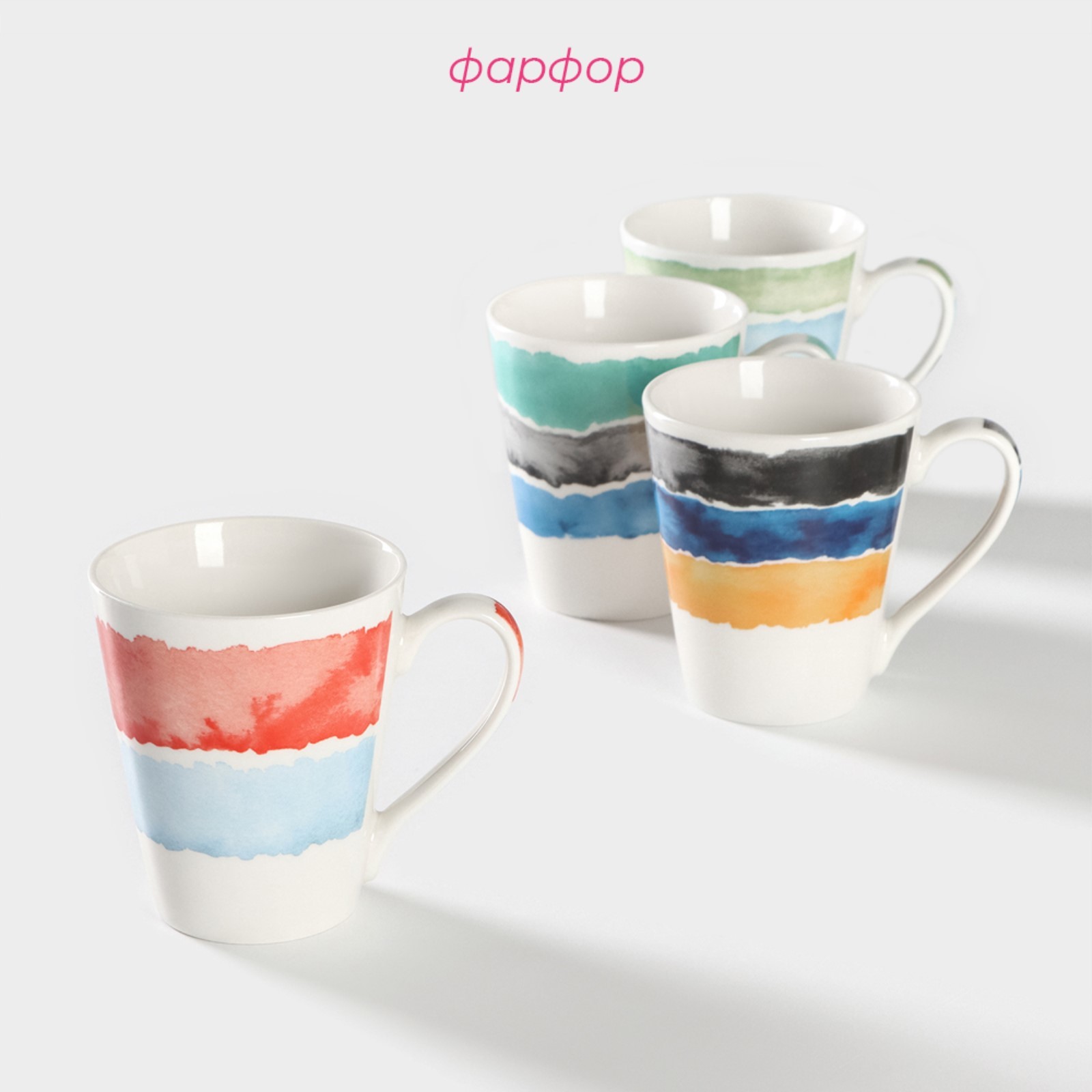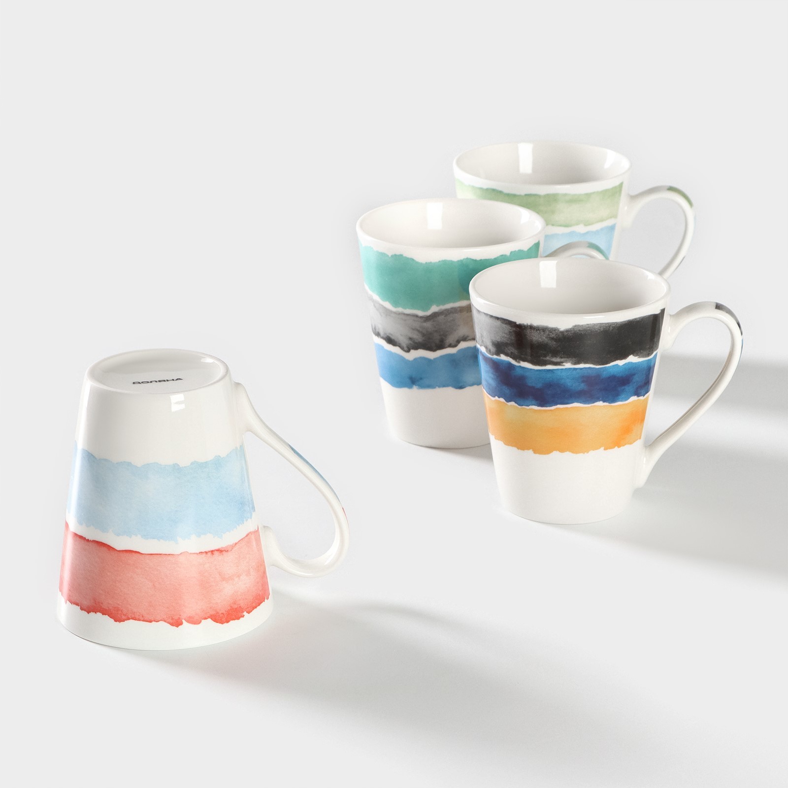 Набор кружек фарфоровых доляна «цветной дым», 4 предмета: 350 мл