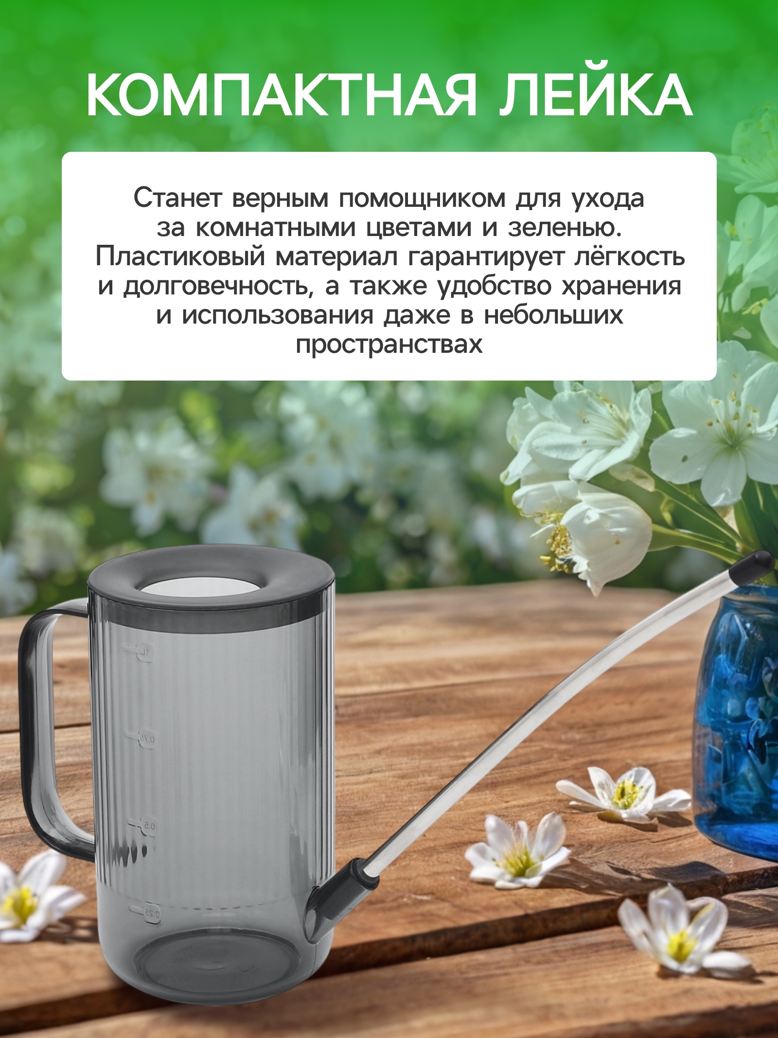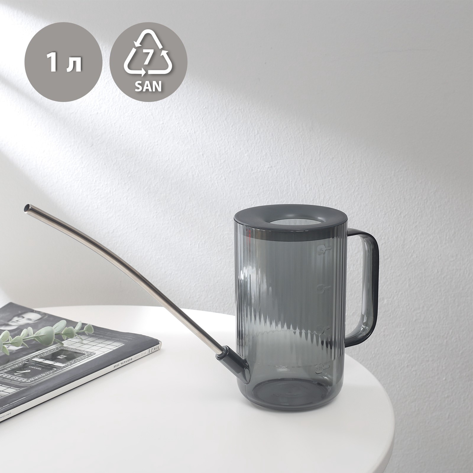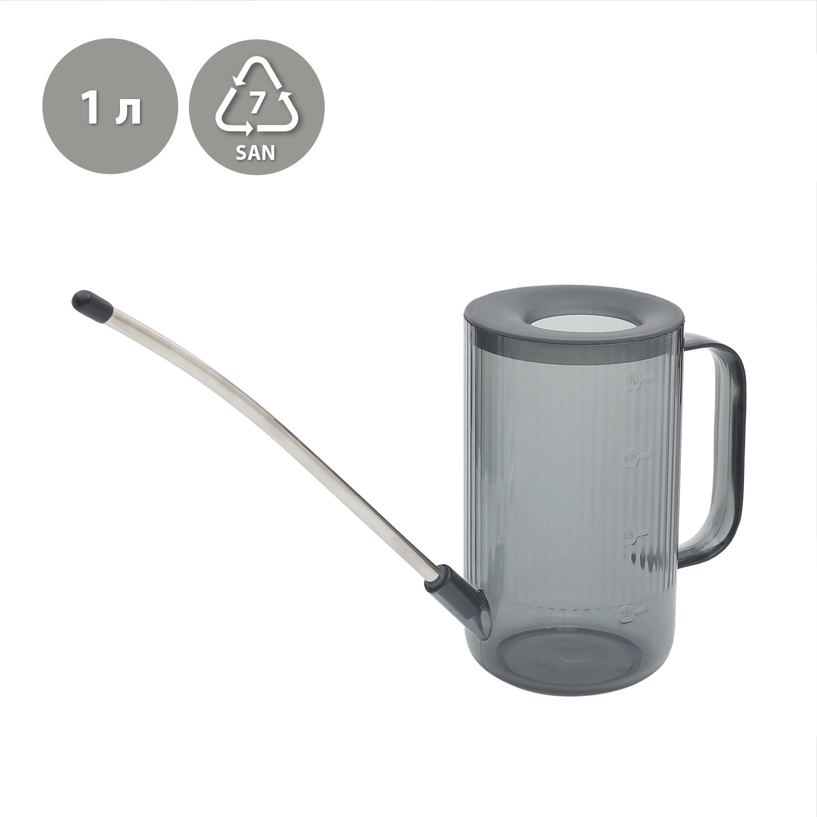 Цвет:Серый|Объём, л:1|Материал:Пластик|Вид:Лейка без рассеивателя|Подходит для комнатных растений:Да|Страна:Китай