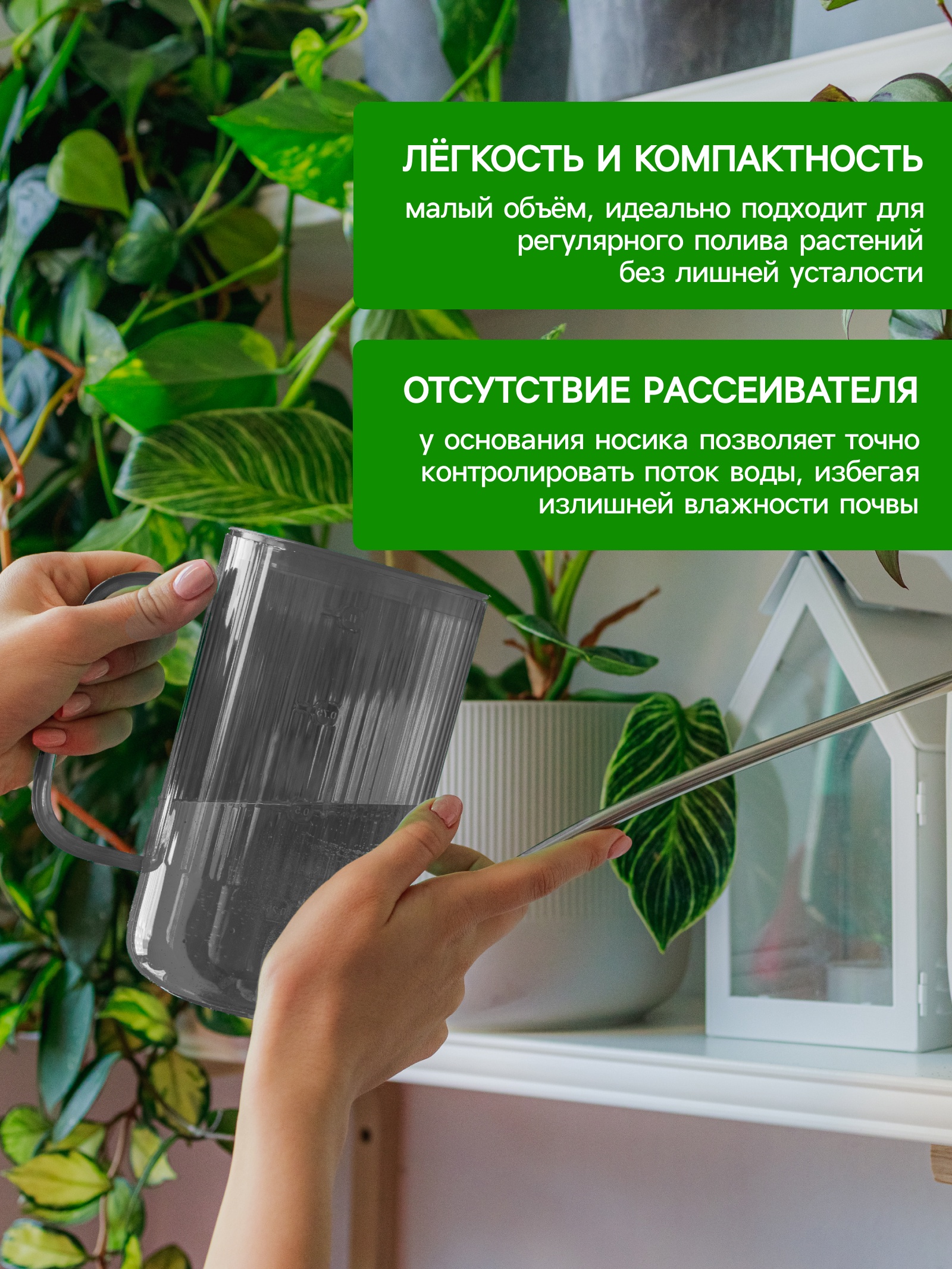 Эта стильная лейка станет вашим верным спутником в уходе за домашними растениями. Заботьтесь о зелёных друзьях с удовольствием!