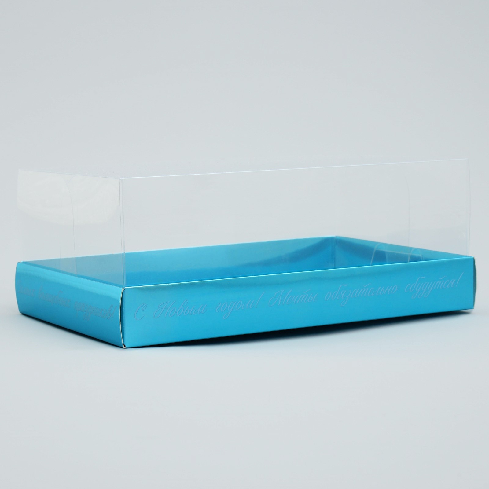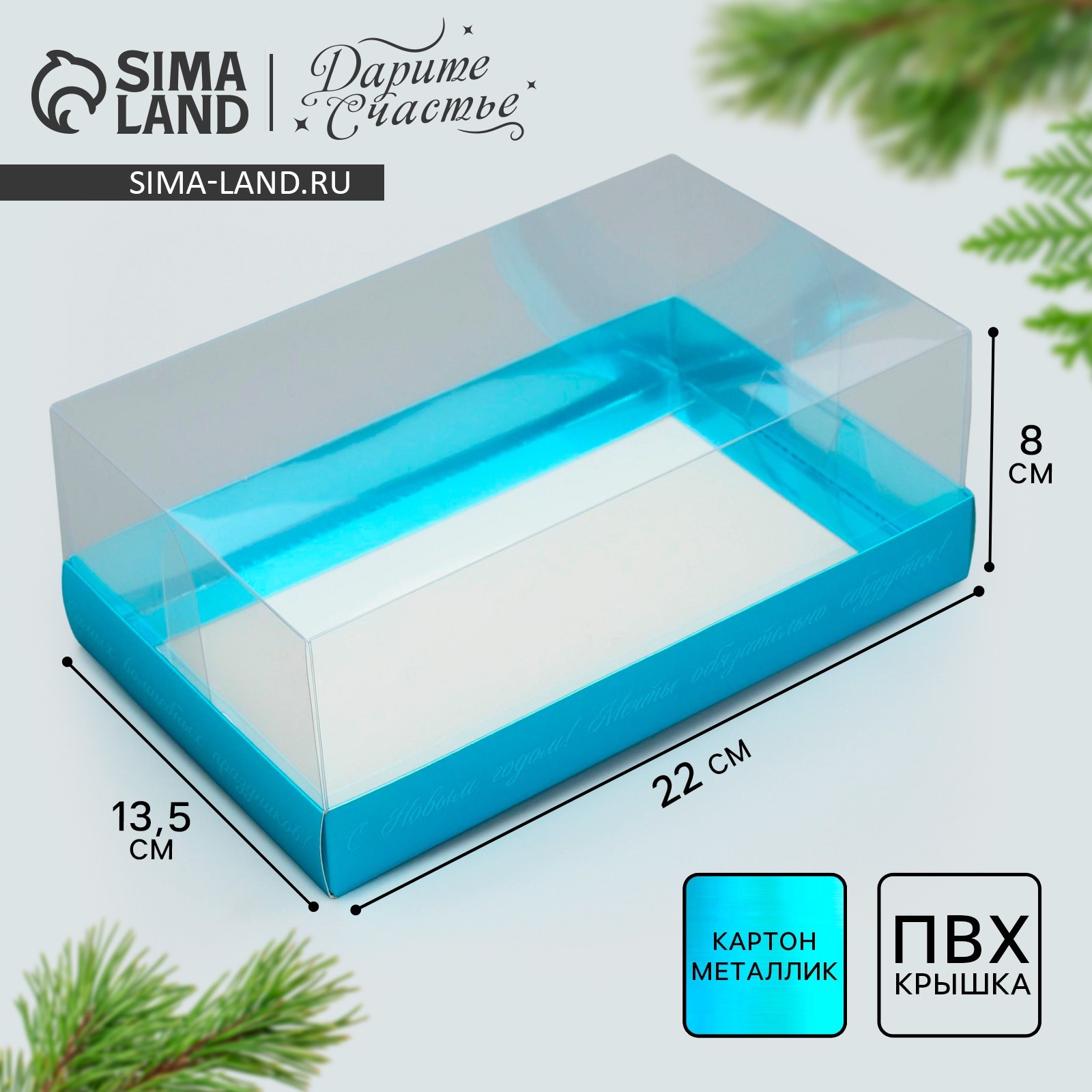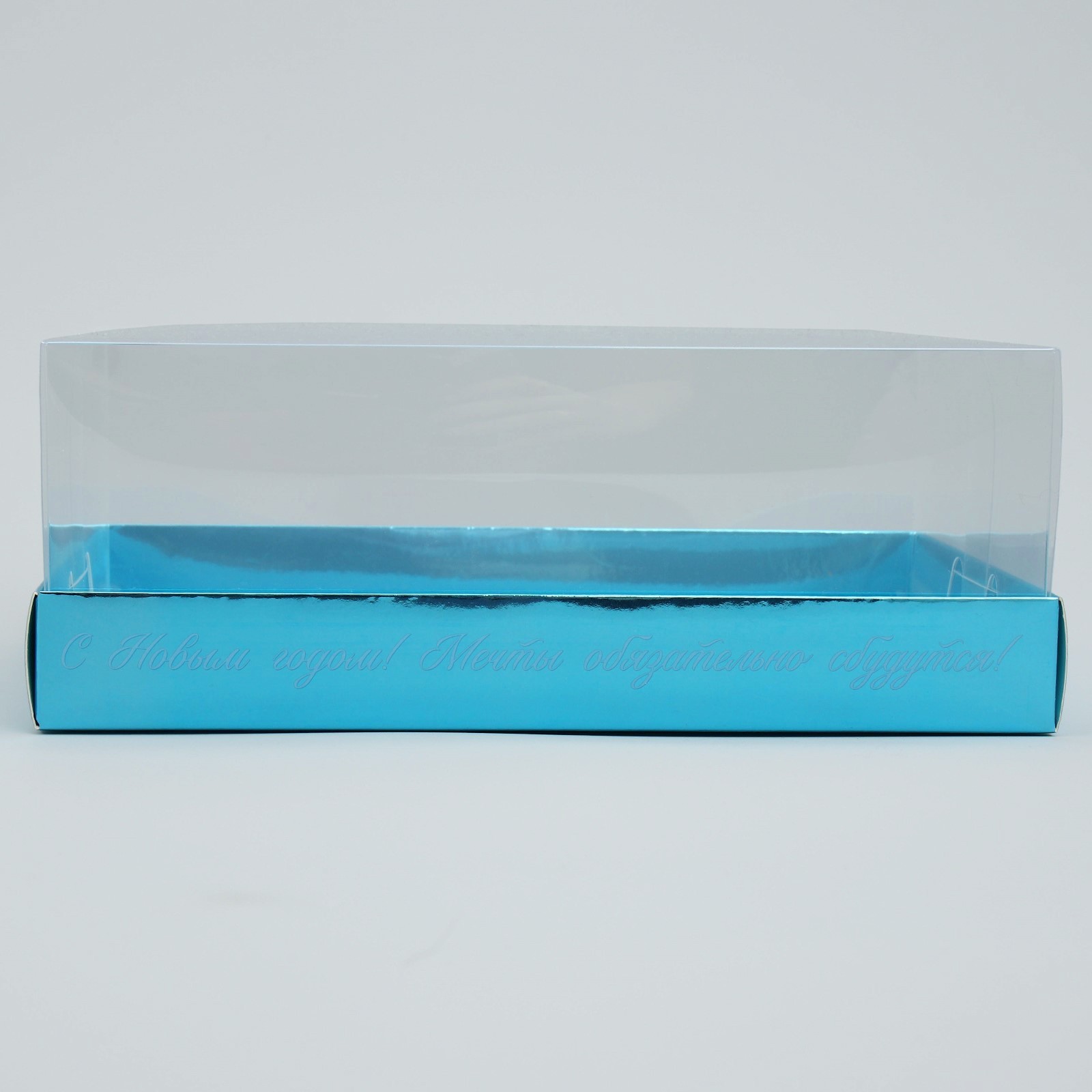 Коробка для десерта «с новым годом», 22 х 8 х 13.5 см. Цвет:Голубой|Форма:Прямоугольная|Плотность, г/м :250|Длина, см:22|Ширина, см:8|Высота, см:13.5|Тематика:Однотонная|Тематика праздника:Новый год|Материал:Металлизированный картон|Материал:Пластик|Страна:Китай  развернуть описание ▼