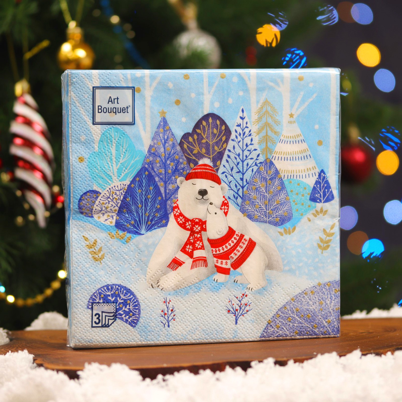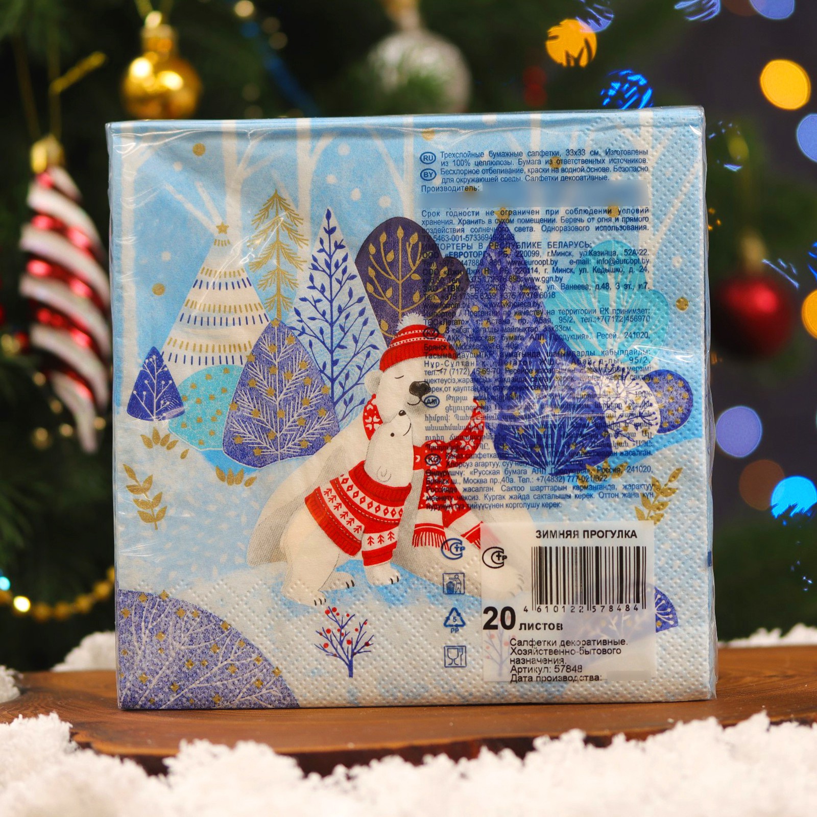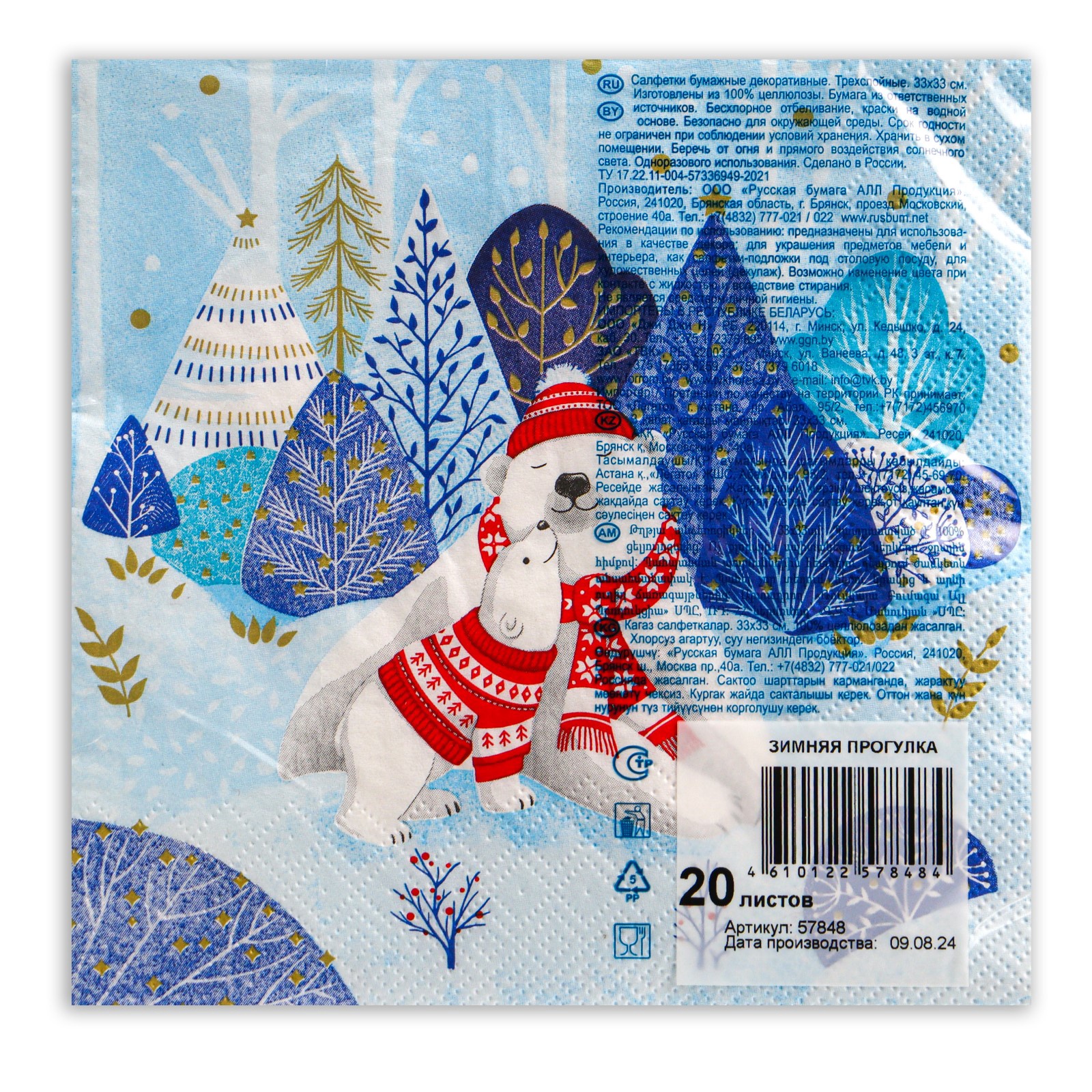 Новогодние салфетки бумажные Art Bouquet «зимняя прогулка», 3 слоя, 33х33 см, 20 шт.