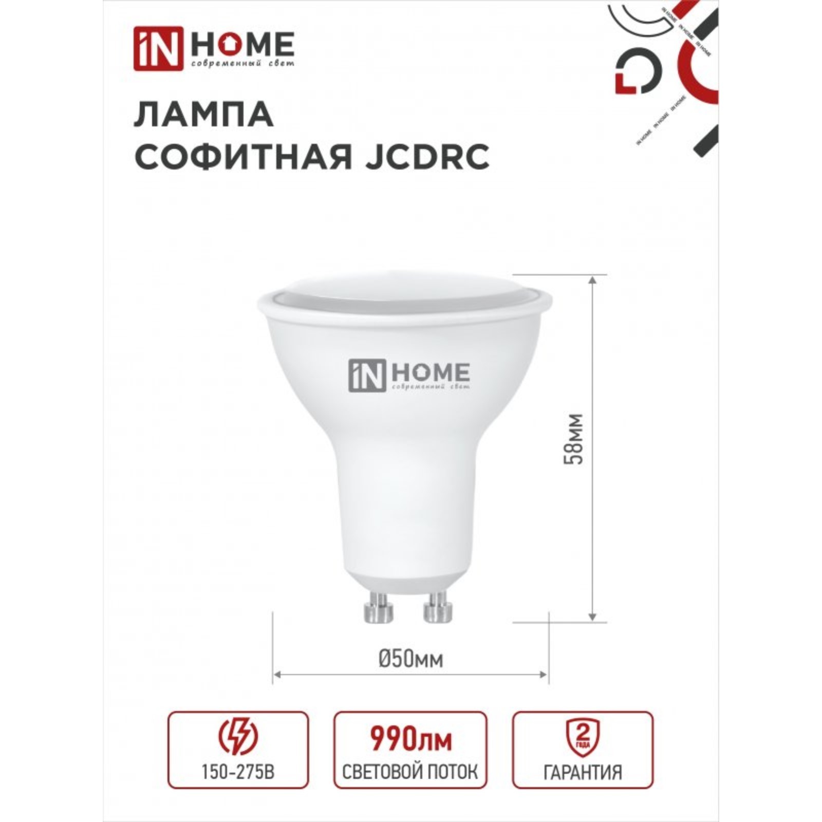 Лампа светодиодная In Home Led-jcdrc-vc, 11 вт, 230 в, Gu10, 4000 к, 990 лм