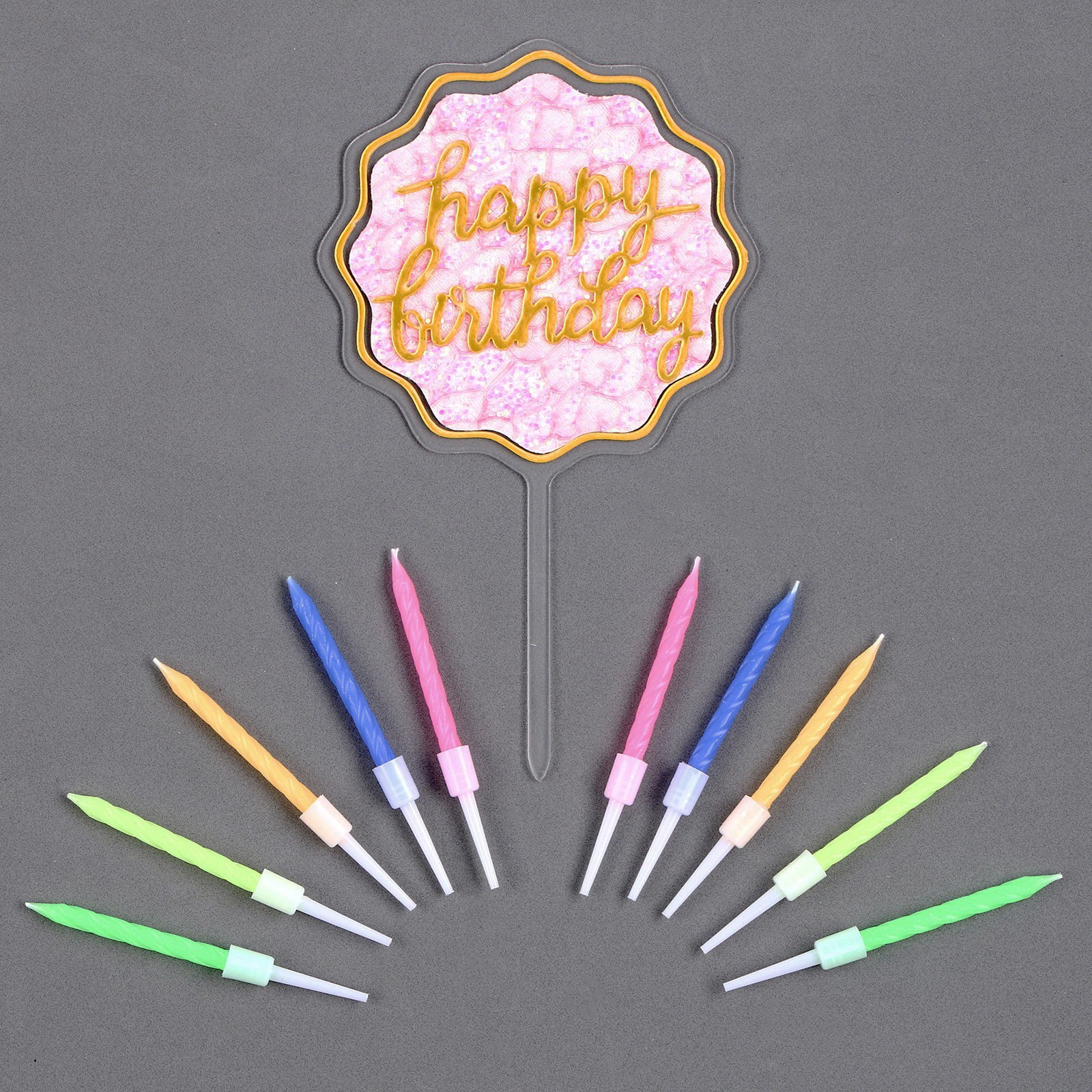 Набор для украшения торта: топпер «с днём рождения», 1 шт., 10 свечей