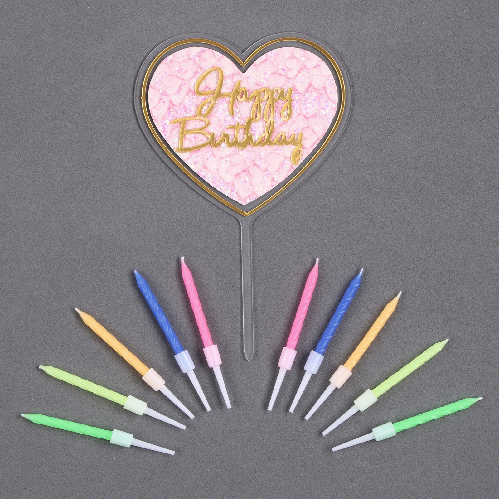 Набор для украшения торта: топпер «с днём рождения», 1 шт., 10 свечей