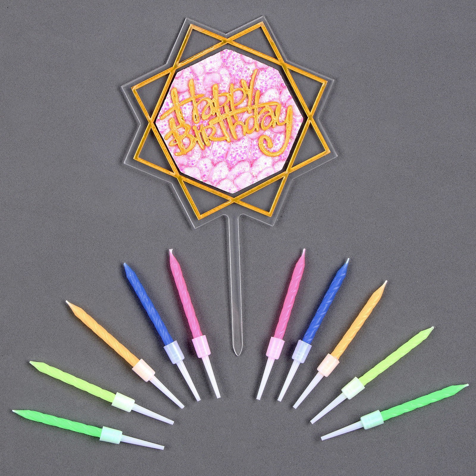 Набор для украшения торта: топпер «с днём рождения», 1 шт., 10 свечей