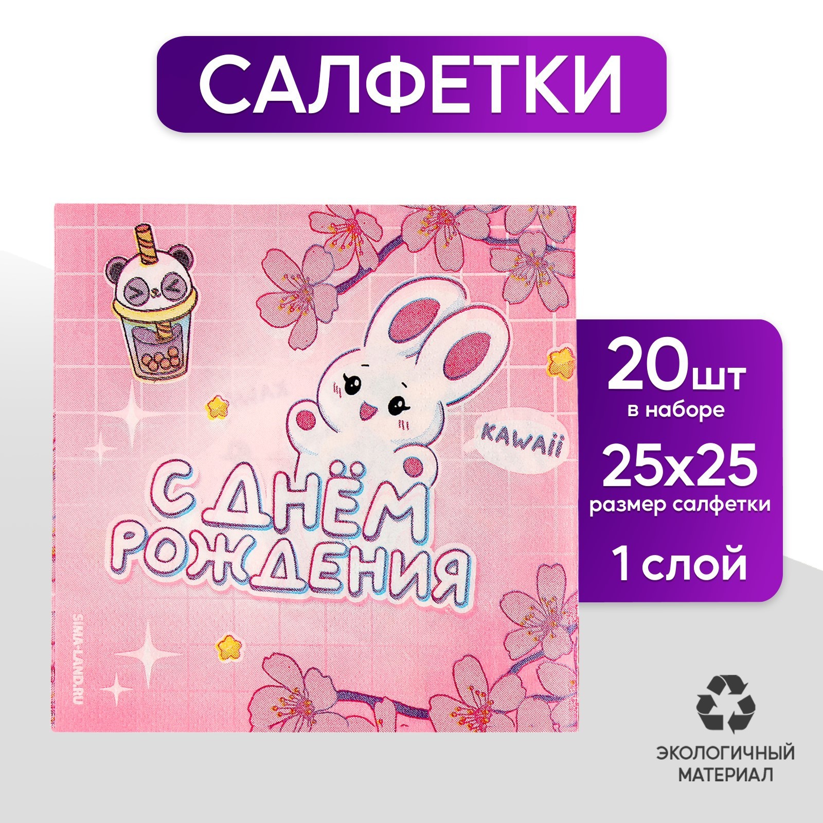 Салфетки бумажные 25*25см "с днем рождения" (набор 20 шт)