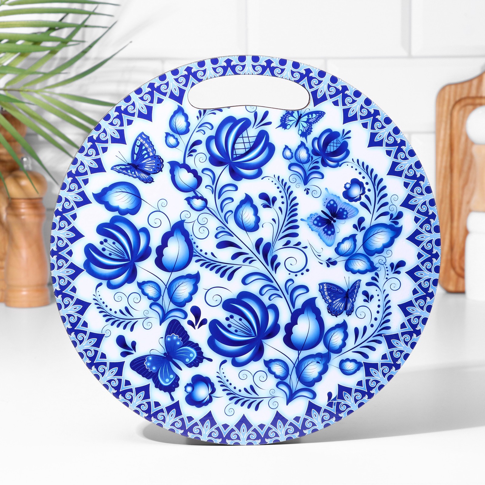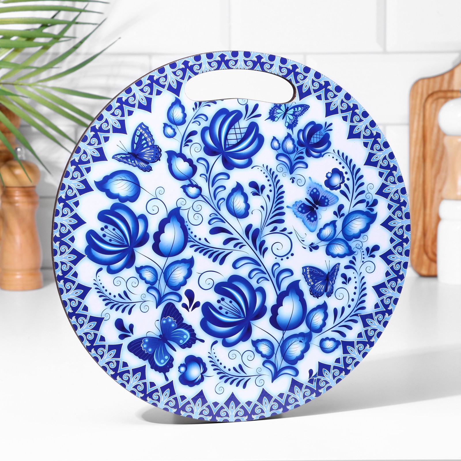 Доска разделочная сувенирная «гжельская роспись», 25,5 см, круглая