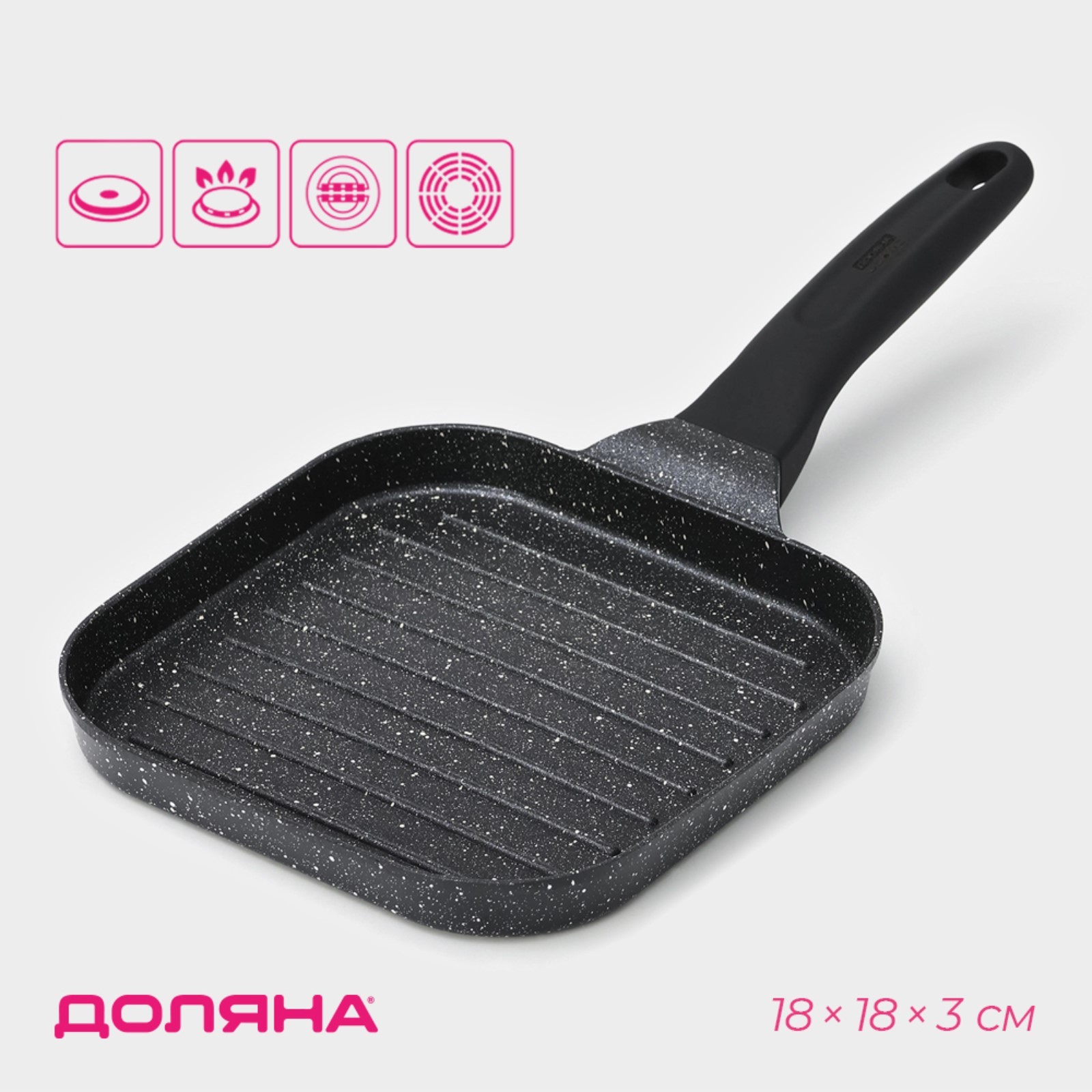 Сковорода гриль доляна «моно», D=18 см, индукция, цвет темный мрамор