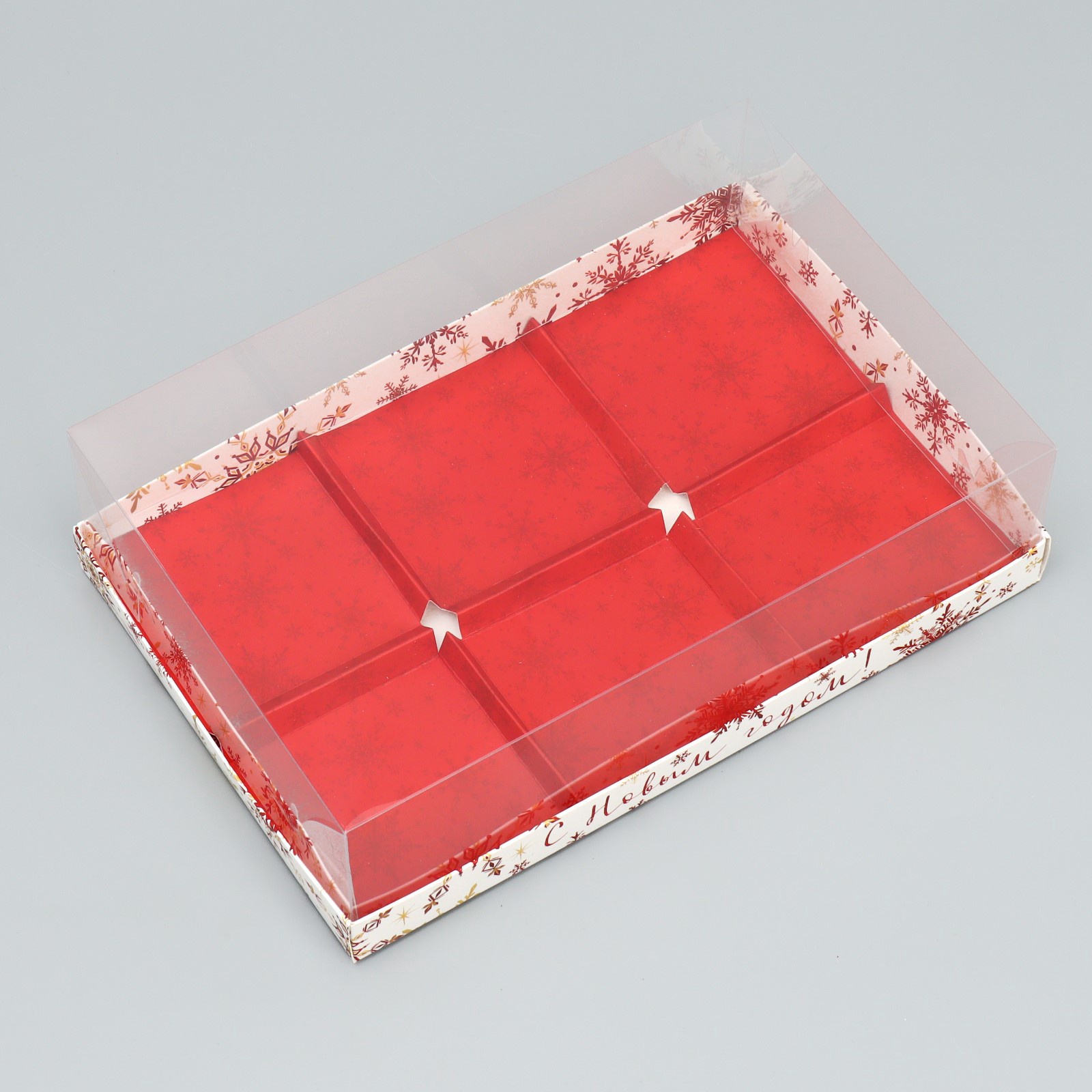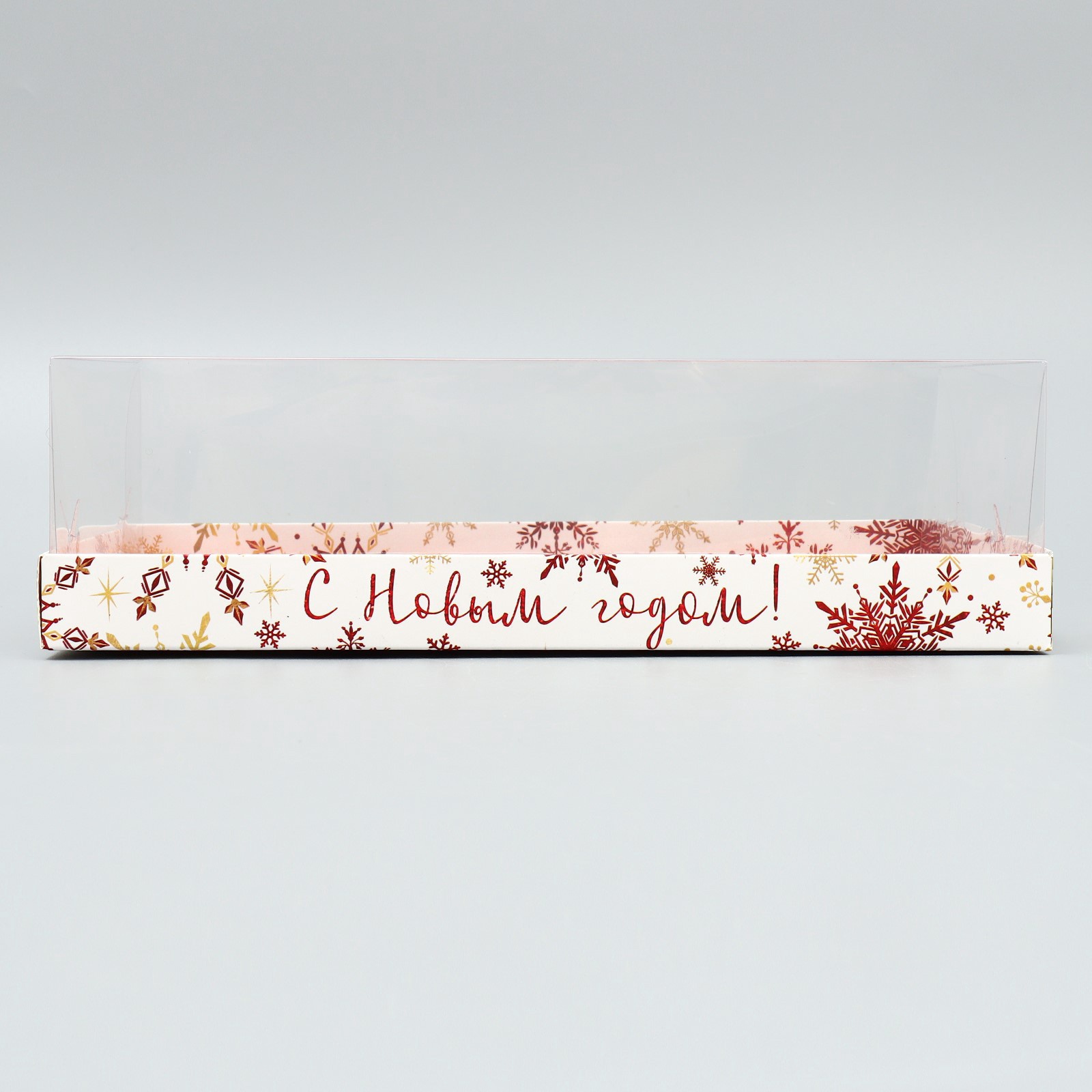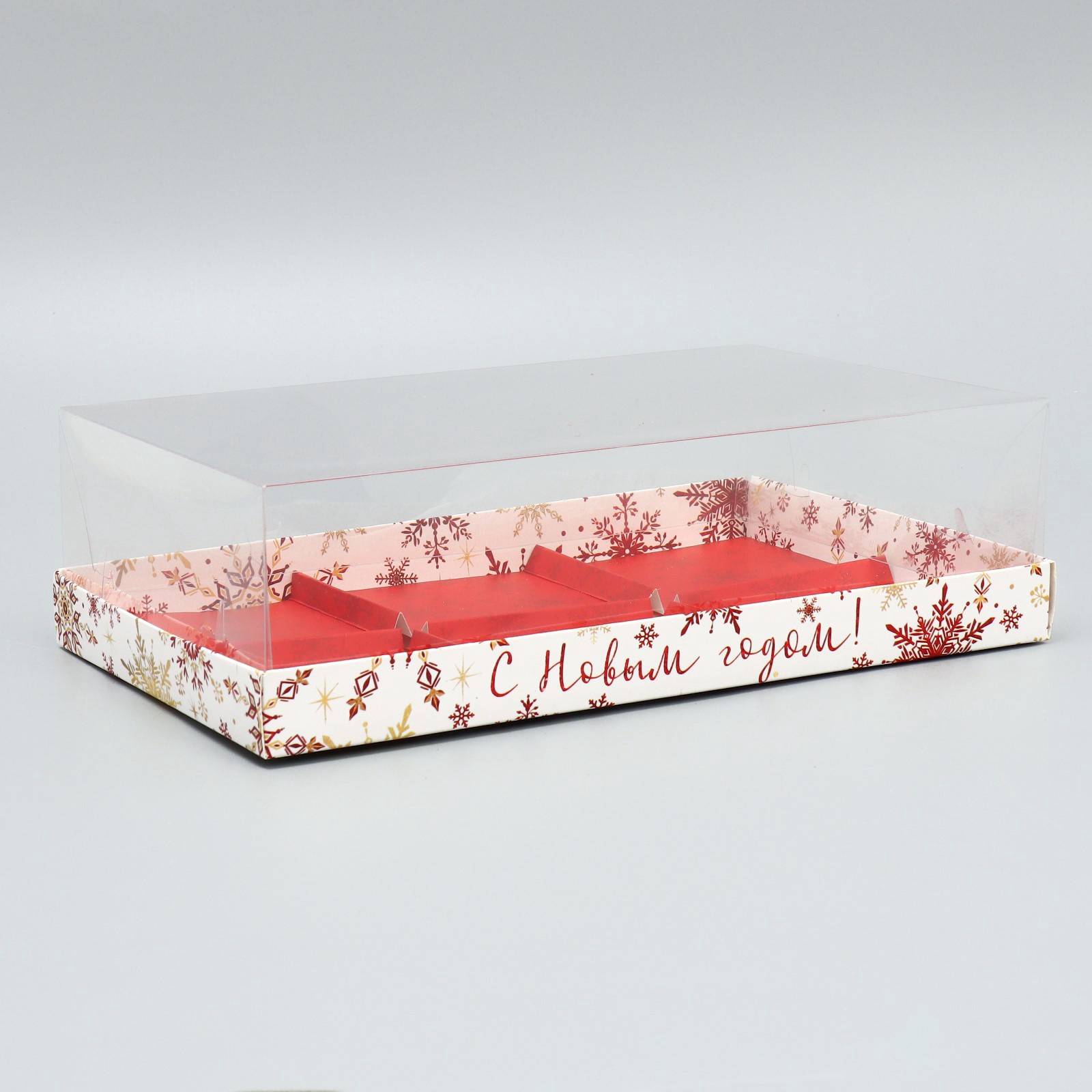 Коробка для муссовых пирожных «с новым годом!», снежинки, 27 х 17.5 х 6.5 см. Цвет:Белый|Цвет:Красный|Форма:Прямоугольная|Плотность, г/м :250|Длина, см:27|Ширина, см:17.8|Высота, см:6.5|Тематика праздника:Новый год|Материал:Картон|Страна:Китай  развернуть описание ▼