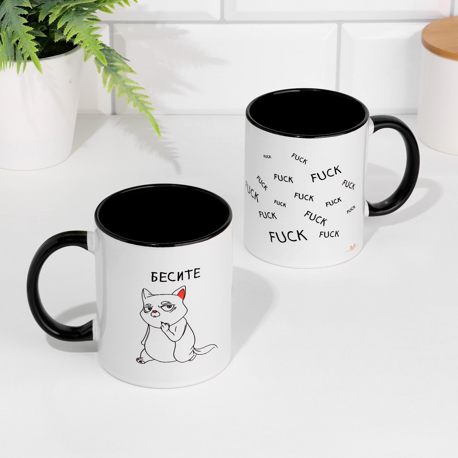 Кружка сублимация "бесите", цвет белый, объем 320 мл, дно черного цвета