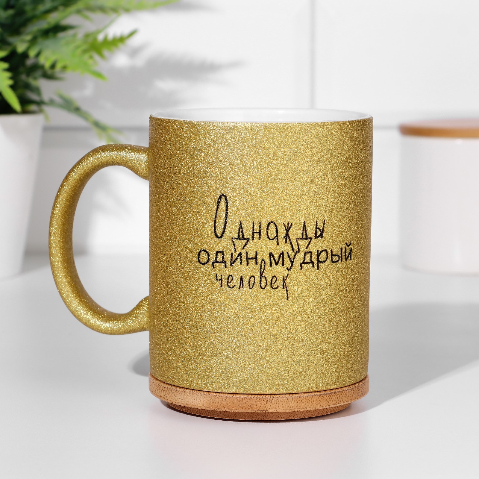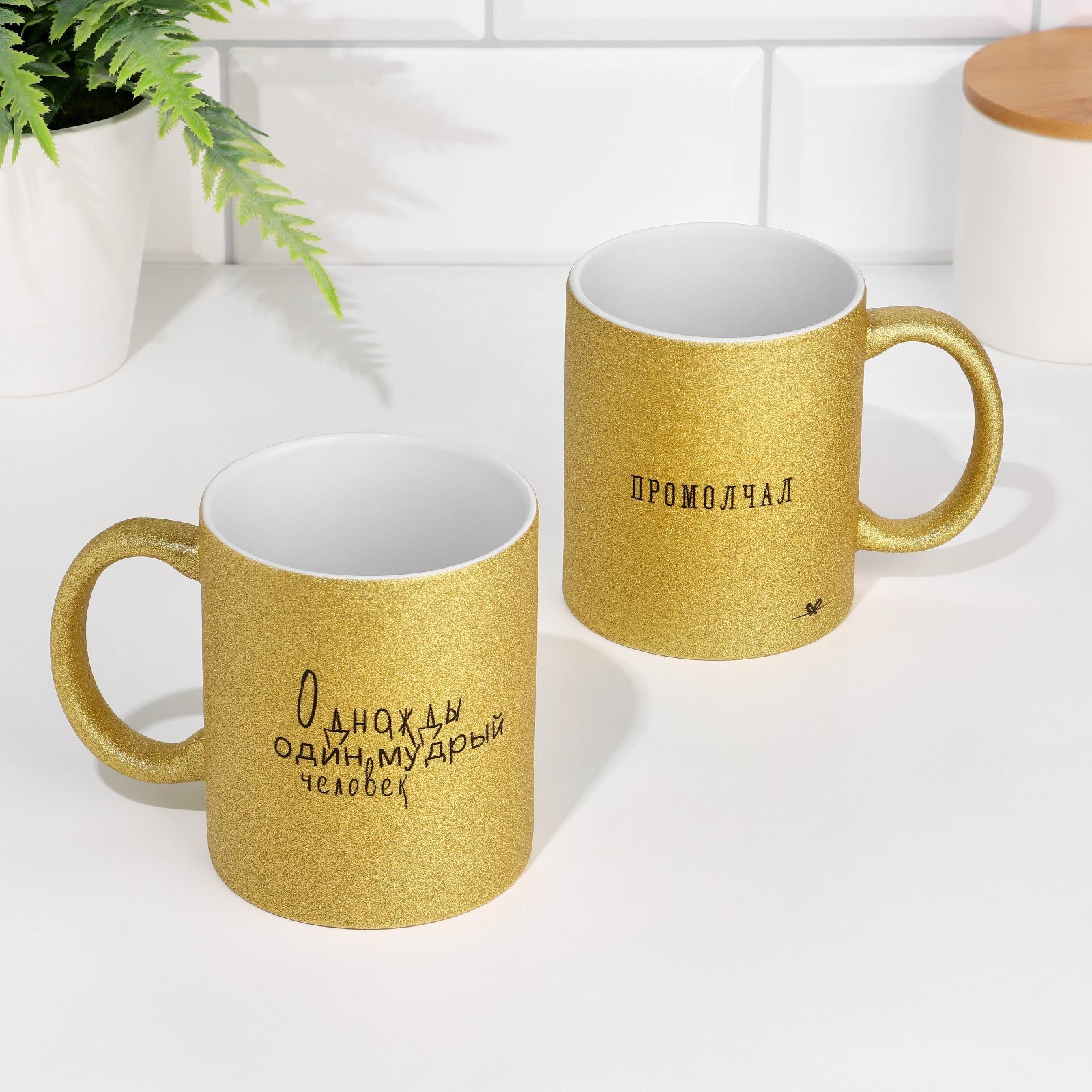 Кружка сублимация "однажды мудрый человек промолчал", цвет золотой глиттер, 320мл