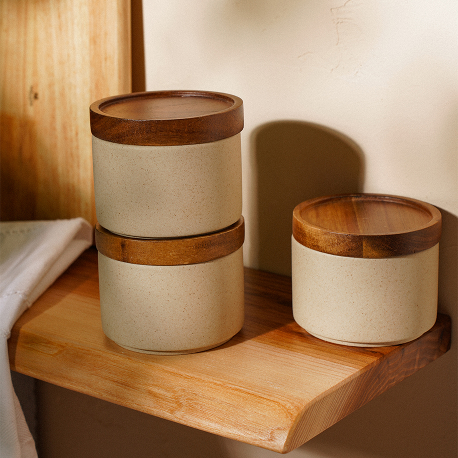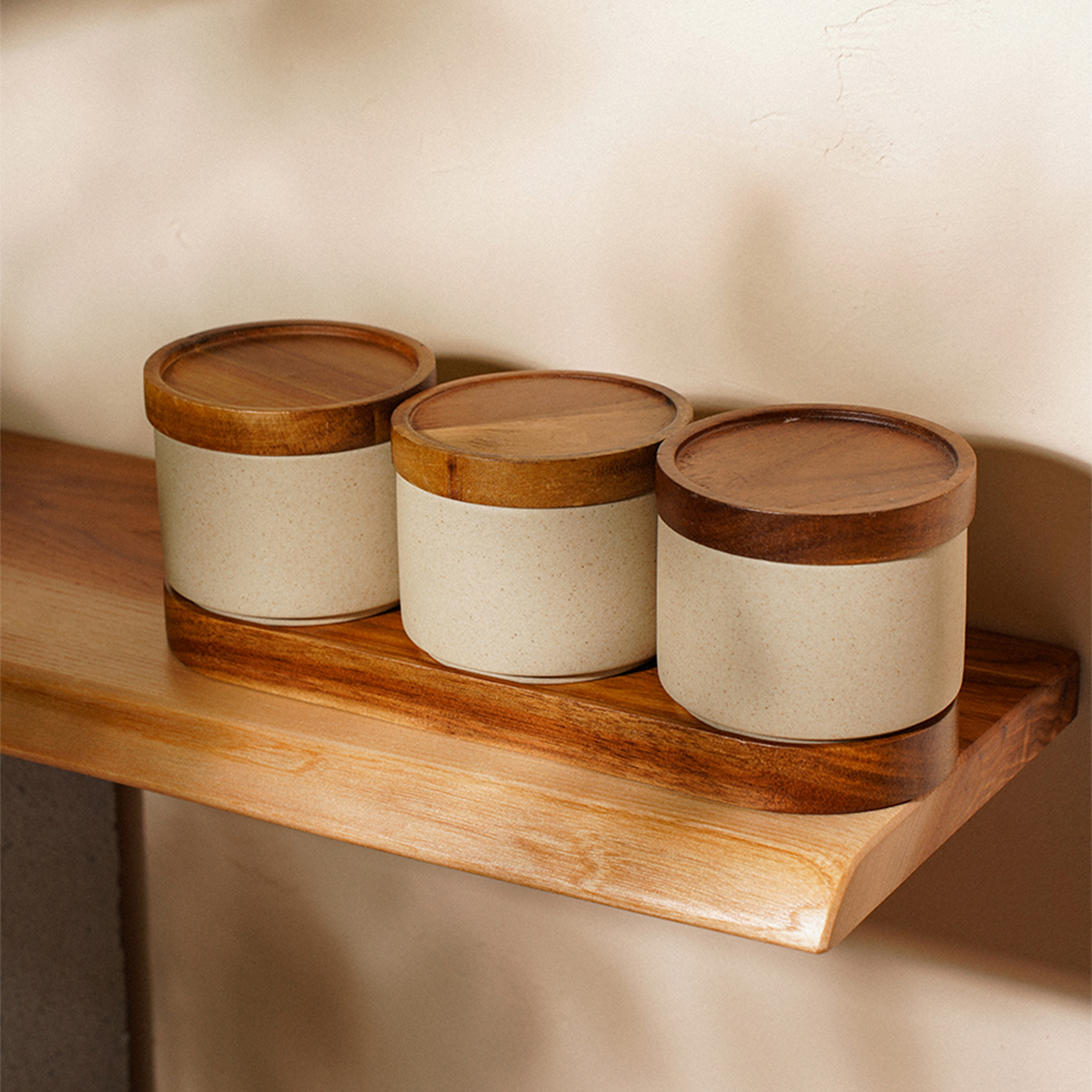 Набор банок для сыпучих продуктов Sl Home "стоун форест", из дерева акации 220 мл.
