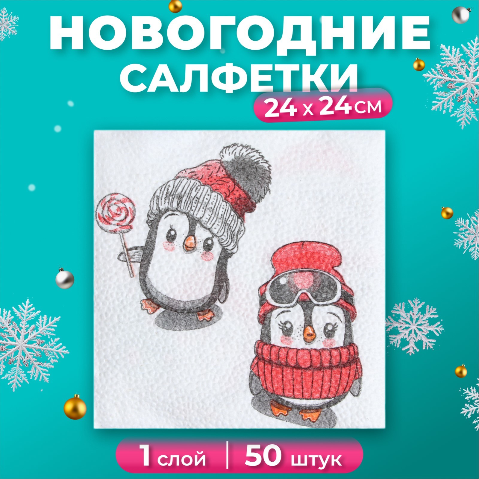 Салфетки бумажные гармония цвета «пингвины» 1 слой, 24х24, 50 шт.. Салфетки с новогодним рисунком станут отличным украшением праздничного стола. Изделия с ярким принтом добавят сервировке красочных ноток и дополнят антураж. Эта деталь придётся по душе всем гостям, которые непременно почувствуют праздничную и уютную атмосферу! Цвет: Разноцветный Размер, см: 24 х 24 В наборе, шт.: 50 Тематика: Новогодняя Вид: С рисунком Температурное ограничение: Нет  развернуть описание ▼