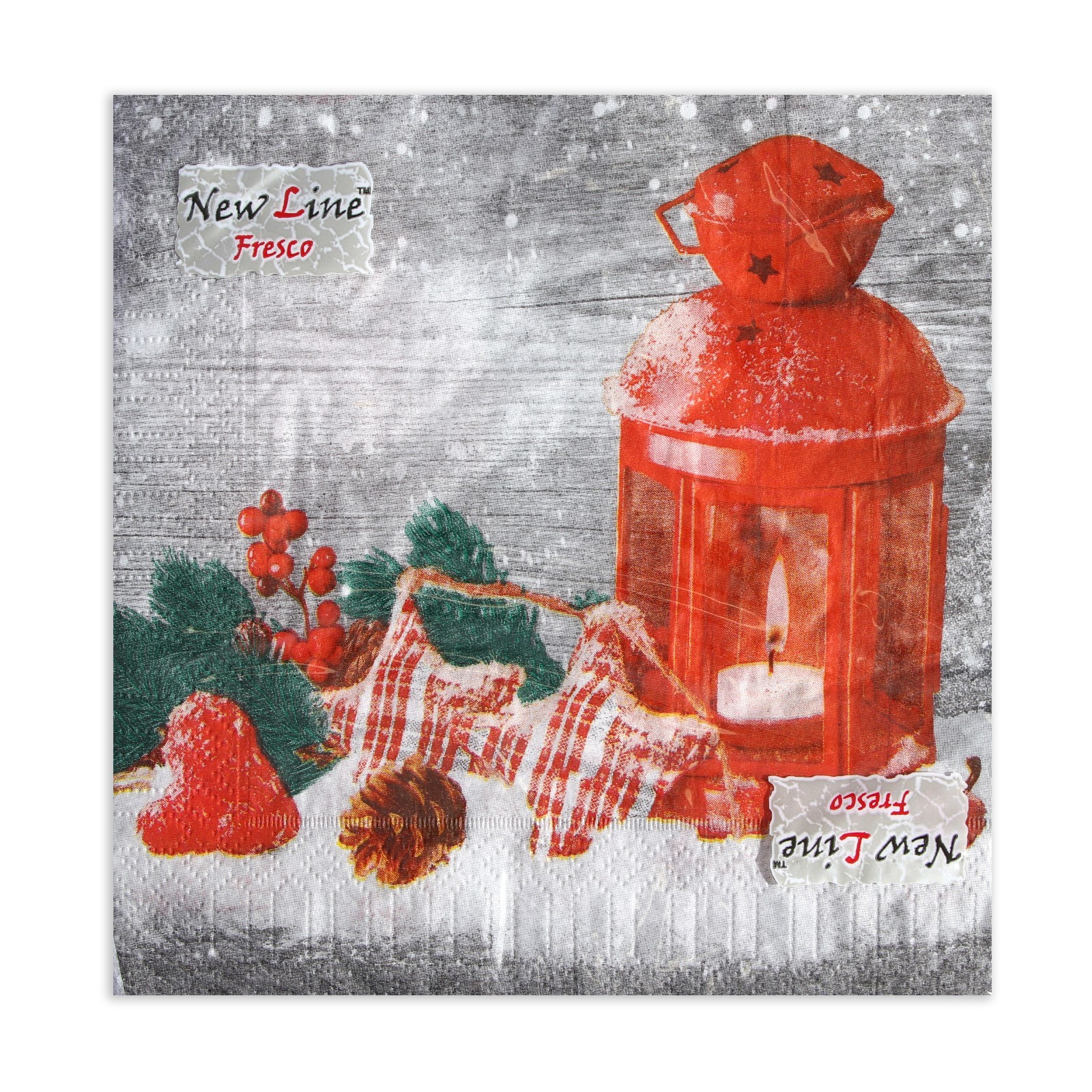 Салфетки бумажные new line fresco «новогодний фонарь» 2 слоя, 33х33, 20 шт.. Если вы хотите, красиво и со вкусом украсить новогодний стол — салфетки с тематическим принтом обязательно займут на нём своё почётное место. Эта деталь придётся по душе всем гостям, которые непременно почувствуют праздничную и уютную атмосферу. Качественные двухслойные бумажные салфетки изготовлены из 100% целлюлозы. Цвет: Разноцветный Размер, см: 33 х 33 В наборе, шт.: 20 Тематика: Новогодняя Материал: Бумага Вид: С рисунком Температурное ограничение: Нет  развернуть описание ▼