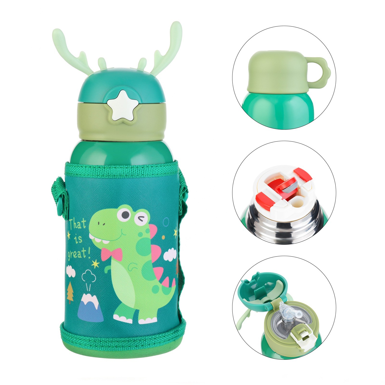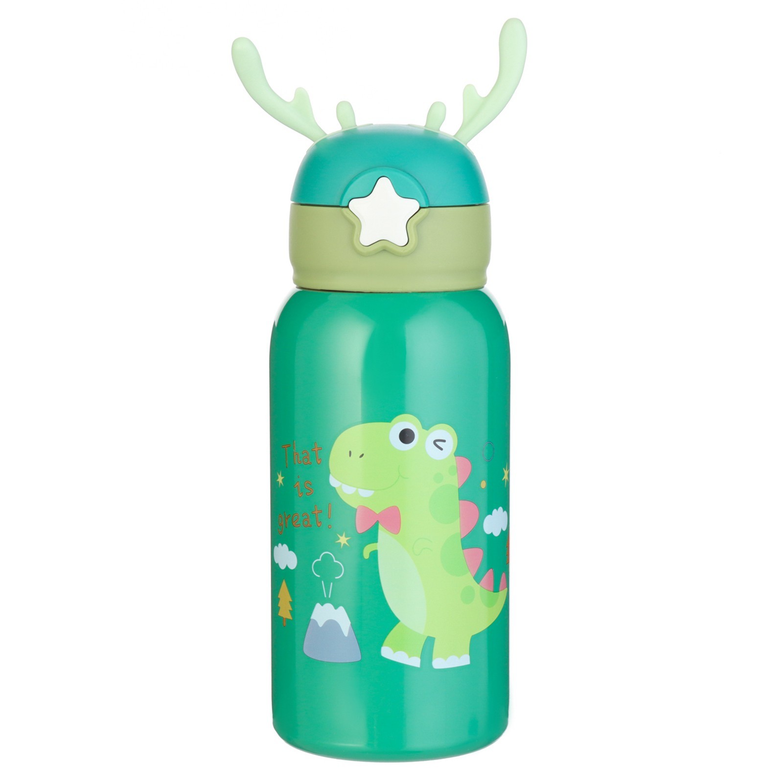 Термос, 500 мл, детский "динозавр", с кружкой, два вида крышек, сохраняет тепло до 6 ч