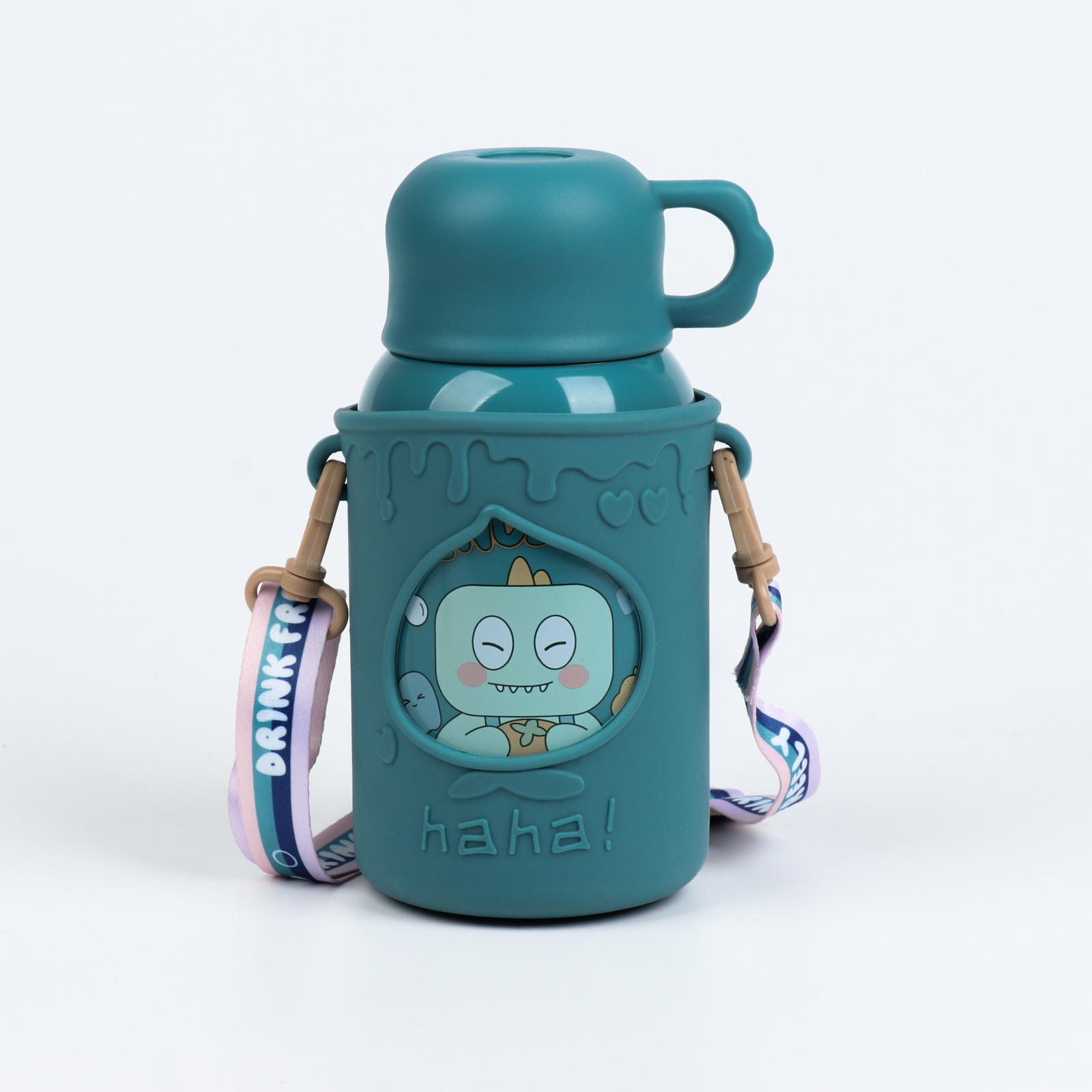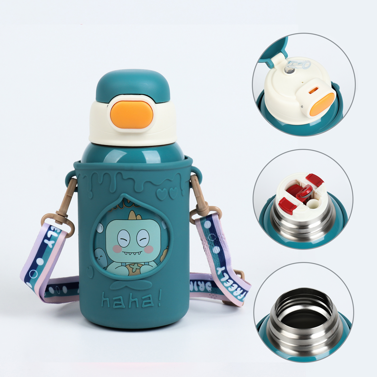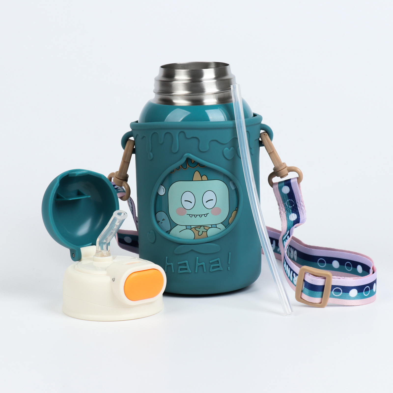 Термос, 500 мл, детский "динозавр", с кружкой, два вида крышек, сохраняет тепло до 8 ч