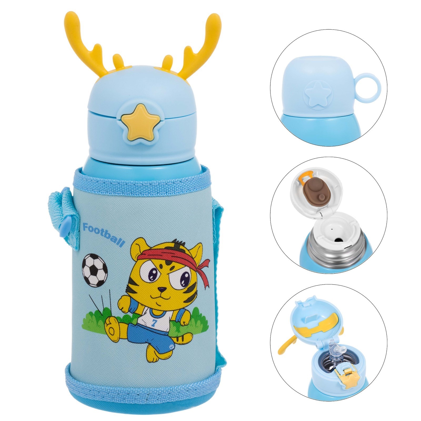 Термос, 600 мл, детский "кот футболист", с кружкой, два вида крышек, сохраняет тепло до 8 ч