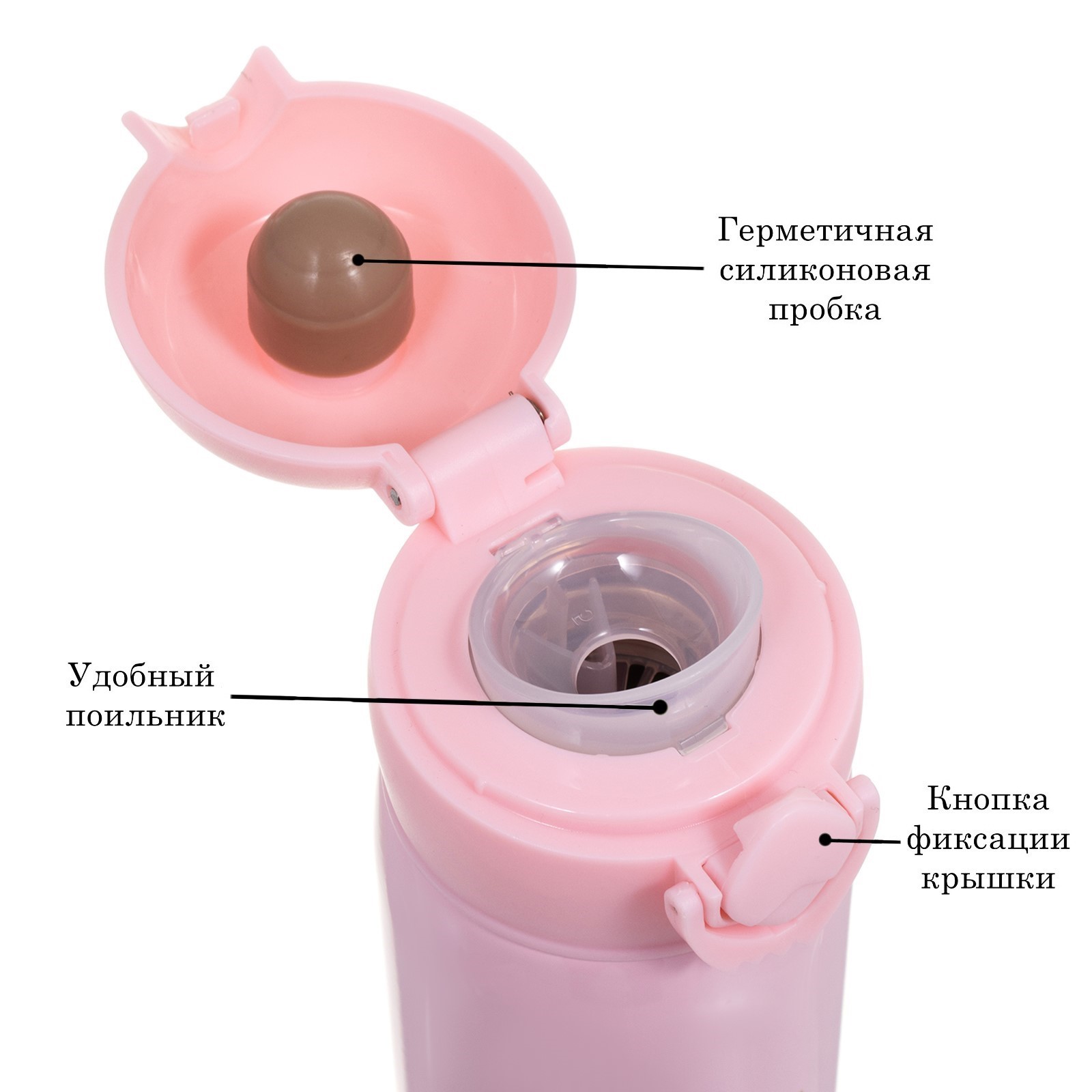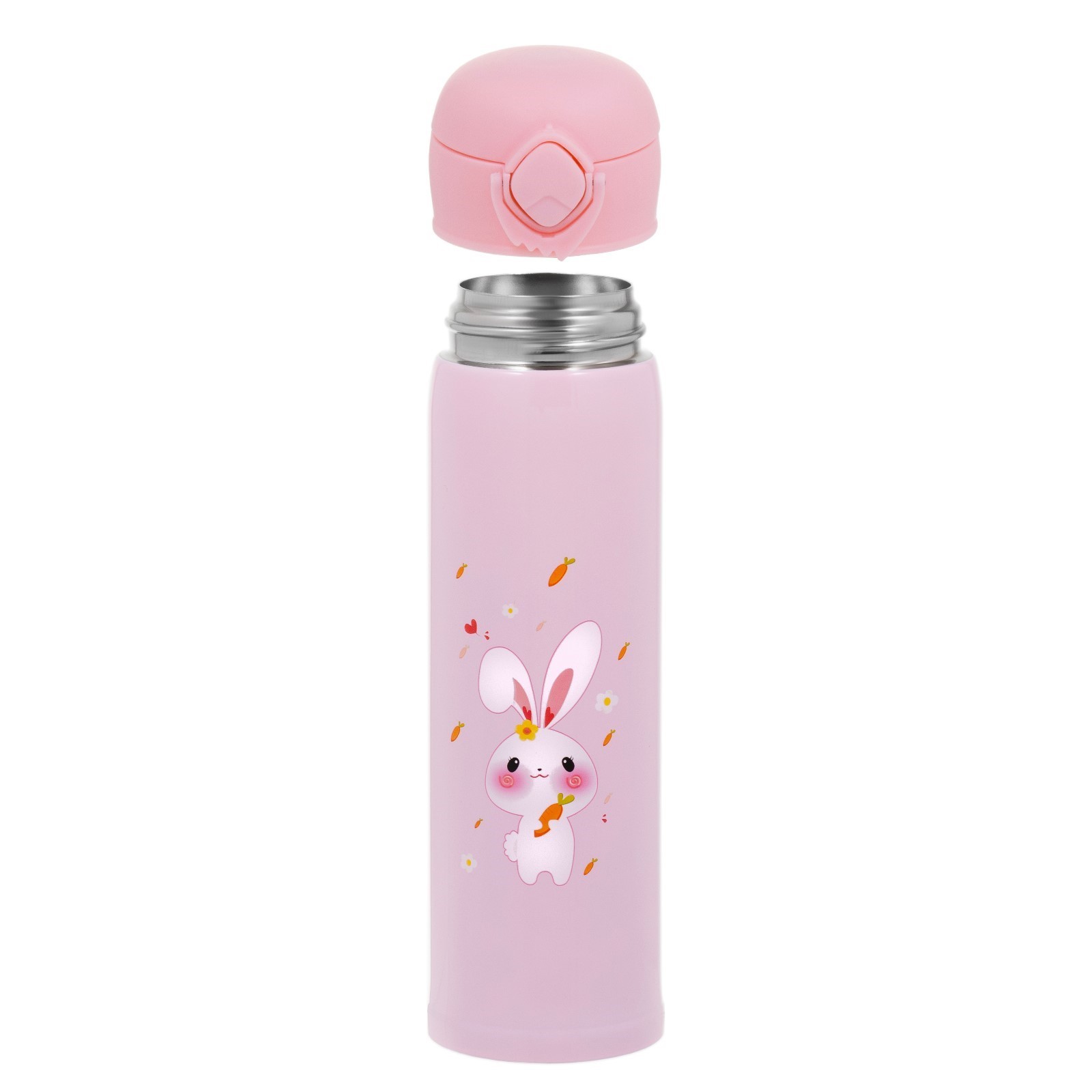 Термос, 450 мл, детский "кролик", сохраняет тепло до 8 ч. Термос детский "Кролик" - это отличное решение на каждый день для маленьких любителей чая и кофе. Термокружка подходит для использования в разных обстоятельствах: идеальна для походов, длительных прогулок с ребенком или мини путешествий на природу. Многие используют ее как инвентарь для отдыха, походов и туризма. Ее можно взять с собой на пикник, а также её можно взять с собой в поездки на дачу, чтобы напитки не остывали по дороге. Удобная форма позволяет уверенно держать её даже в самых различных ситуациях. . Особенности Термокружка выполнена из пластика, силикона и нервавеющей стали поэтому устойчива к механическим повреждениям. Сохраняет тепло до 8 часовОбъём - 450 млНа крышке удобный поильник и замокНаполните уютом ваши прогулки или поездки в машине. Термокружка станет полезным и универсальным подарком на любой праздник для детей. Цвет: Розовый Для кого: Для девочки Объём, л: 0.45 Время сохранения тепла/холода, ч: 8 Материал корпуса: Нержавеющая сталь Тип горлышка: Стандартное Назначение: Для напитков Материал колбы: Металл Особенности: С кнопкой  развернуть описание ▼