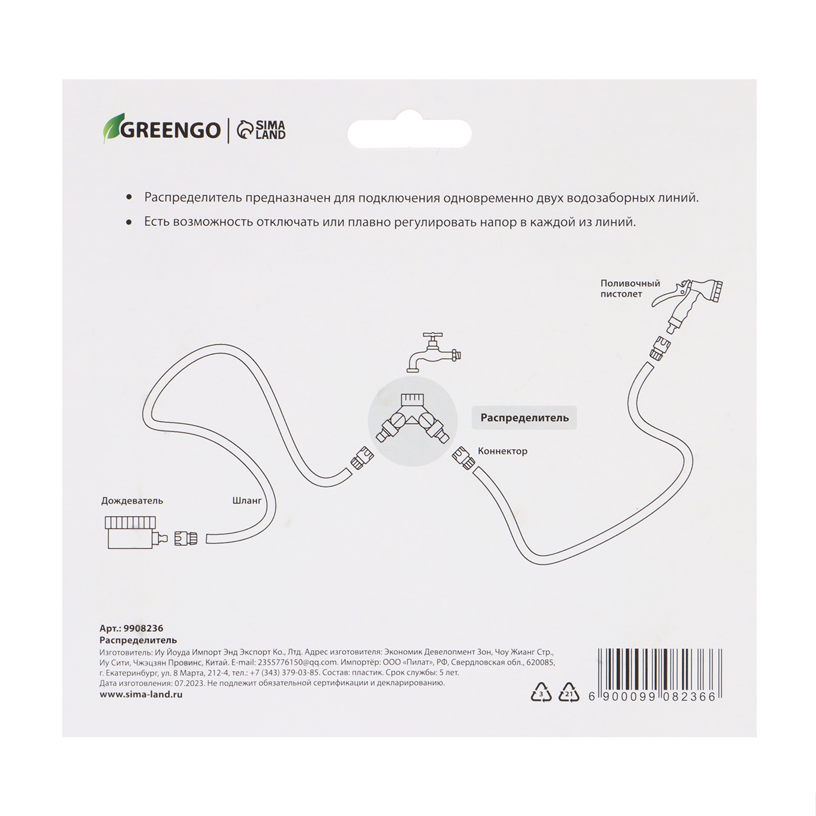 Распределитель 2-канальный, внутренняя резьба 3/4, быстросъёмное соединение, прорезиненный пластик, Greengo