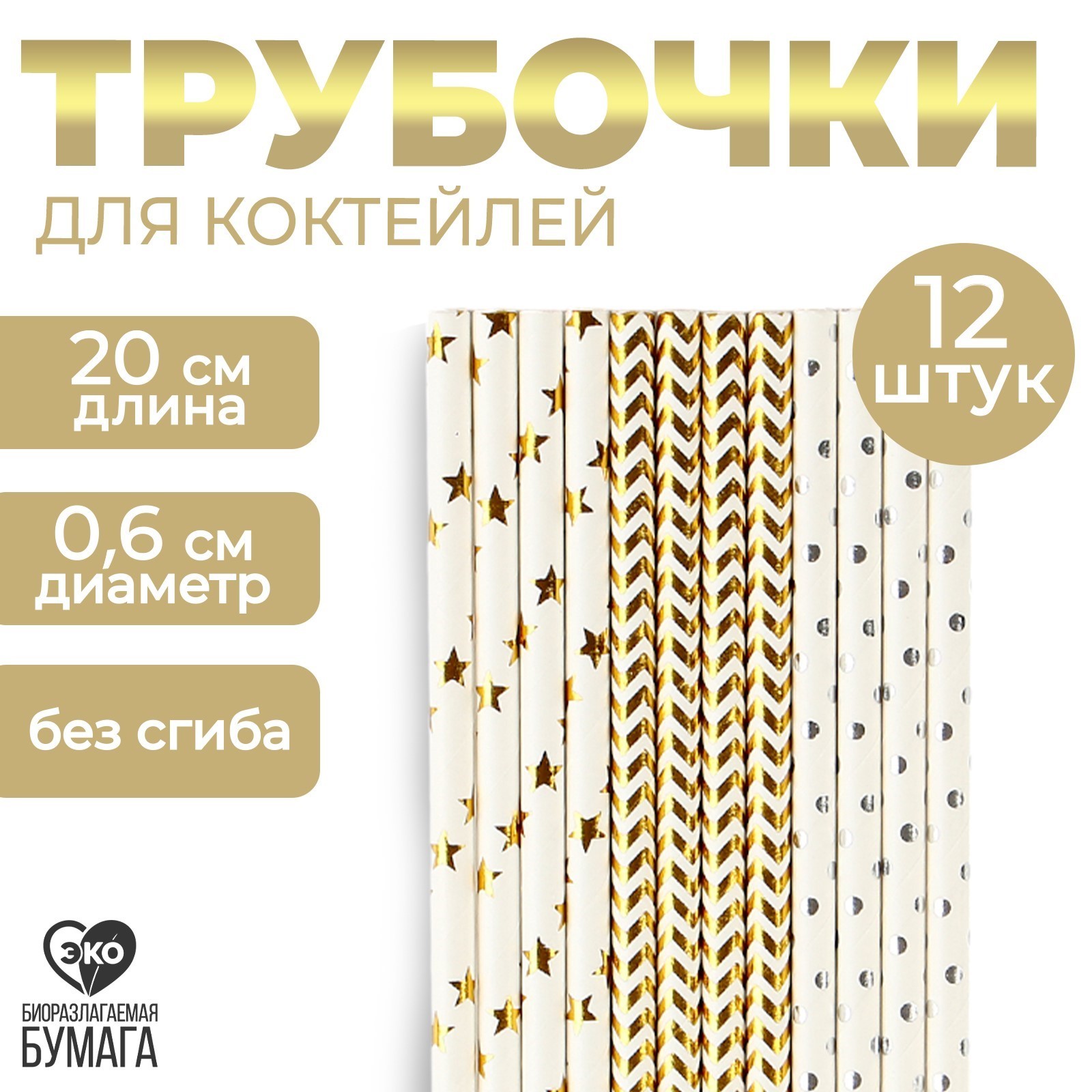 Трубочки бумажные 12 шт «золото»