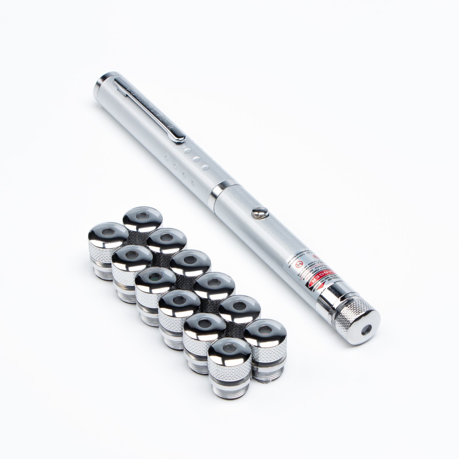 Лазерная указка, 532 нм, 12 насадок, 2 ааа, зеленый луч
