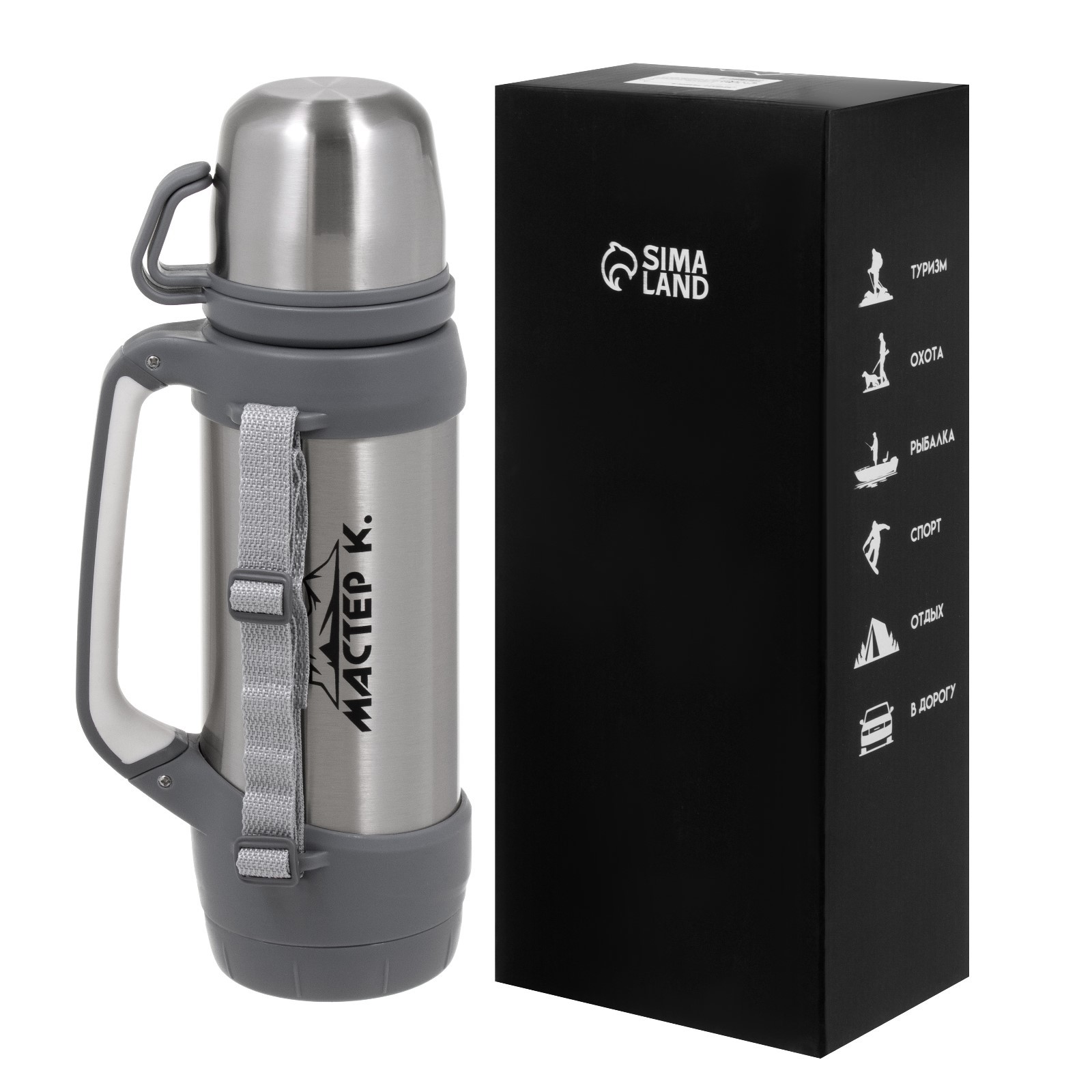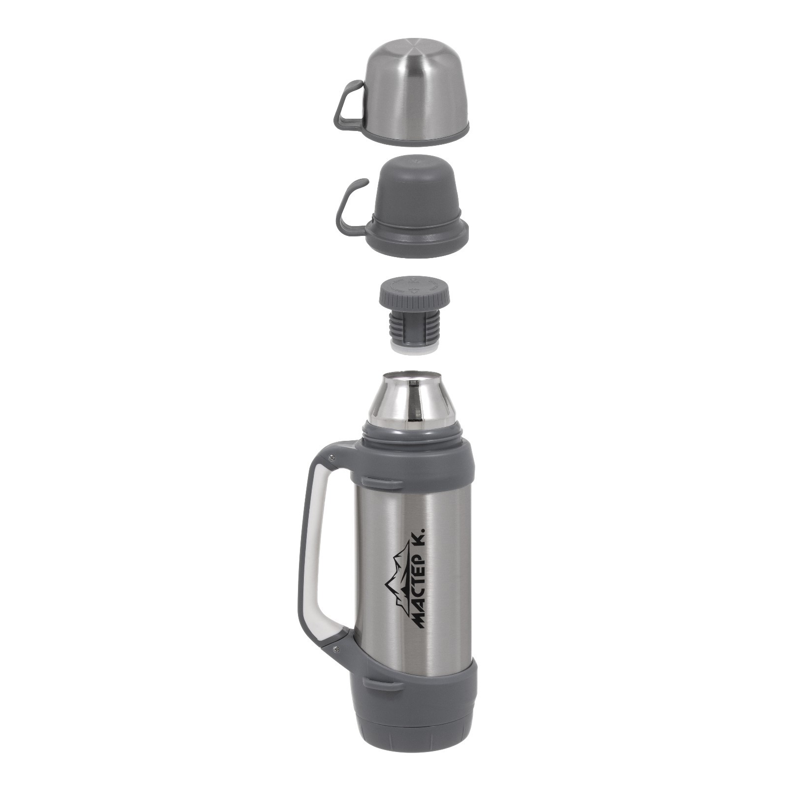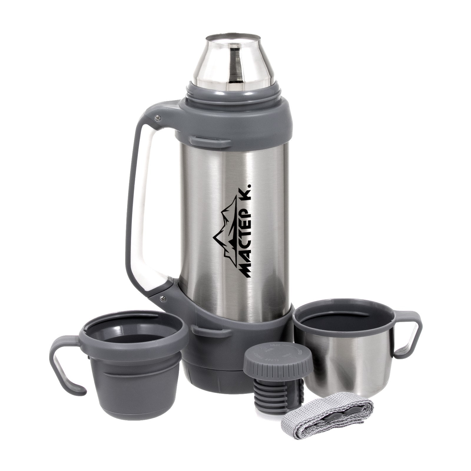 Термос, 1 л, тропа "мастер к", с двумя кружками, сохраняет тепло до 12 ч